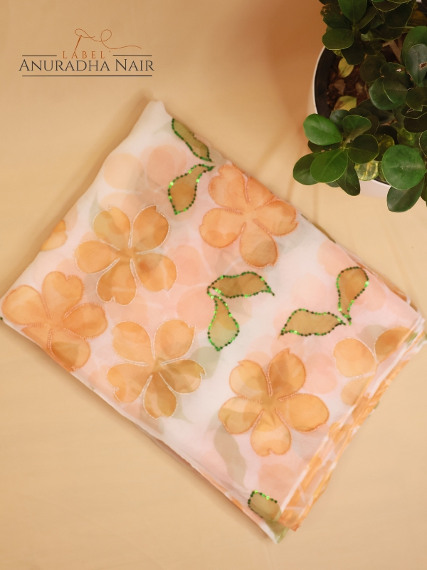 Home Sarees Organza Orange and Green Floral Organza Saree