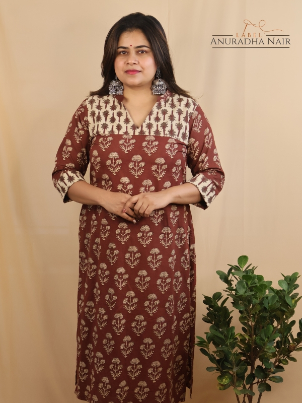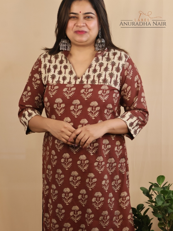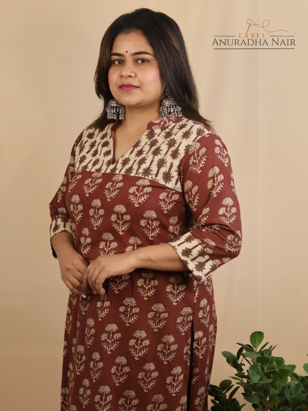 Maroon Bagru Handblock Kurti