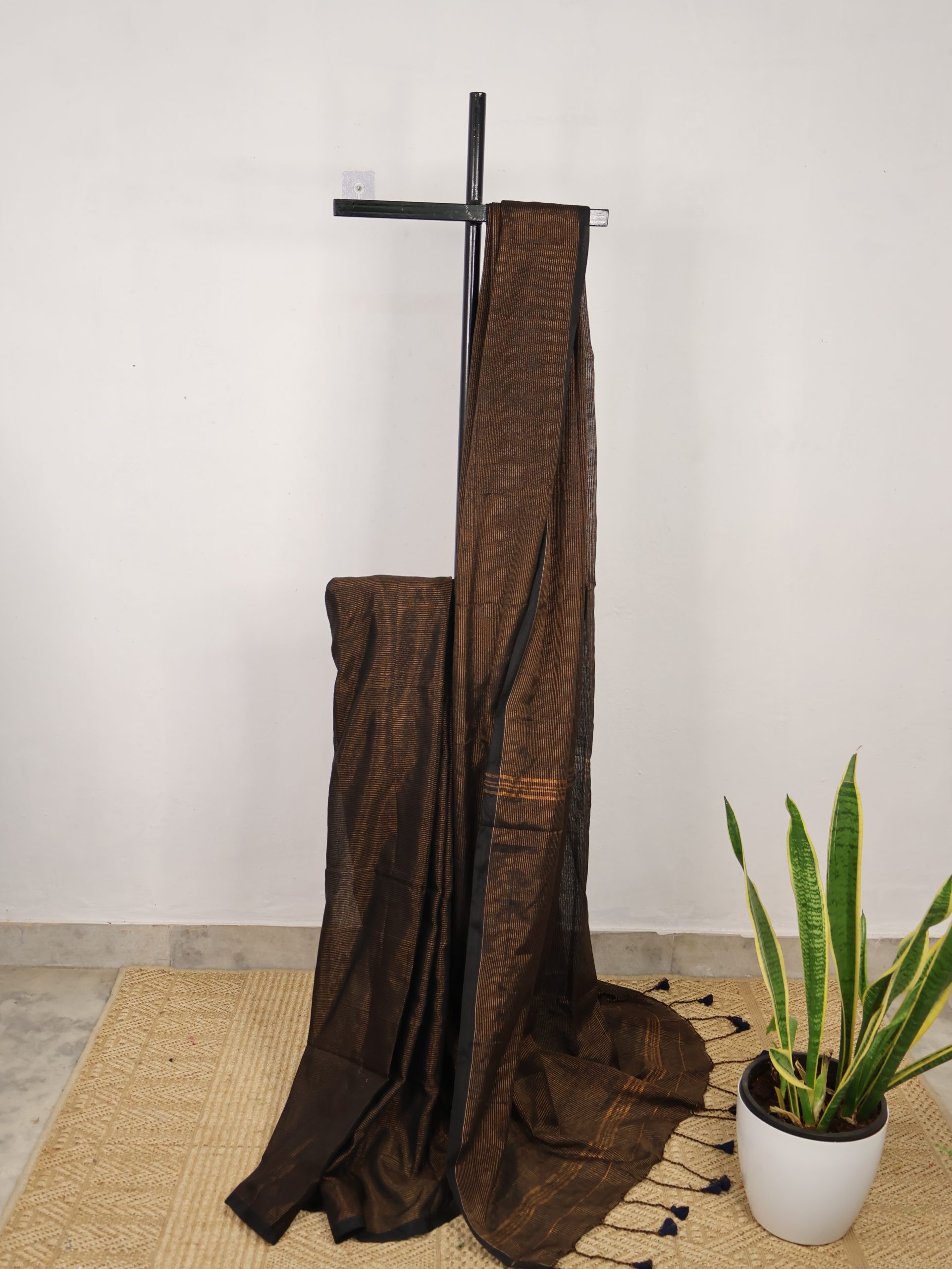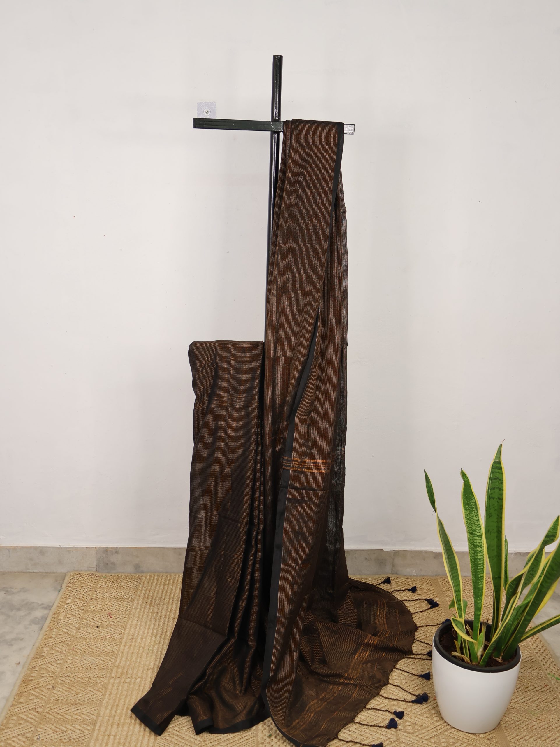 Home Sarees Mul Cotton Saree With Zari Lines Black Mul Cotton Saree With Zari Lines