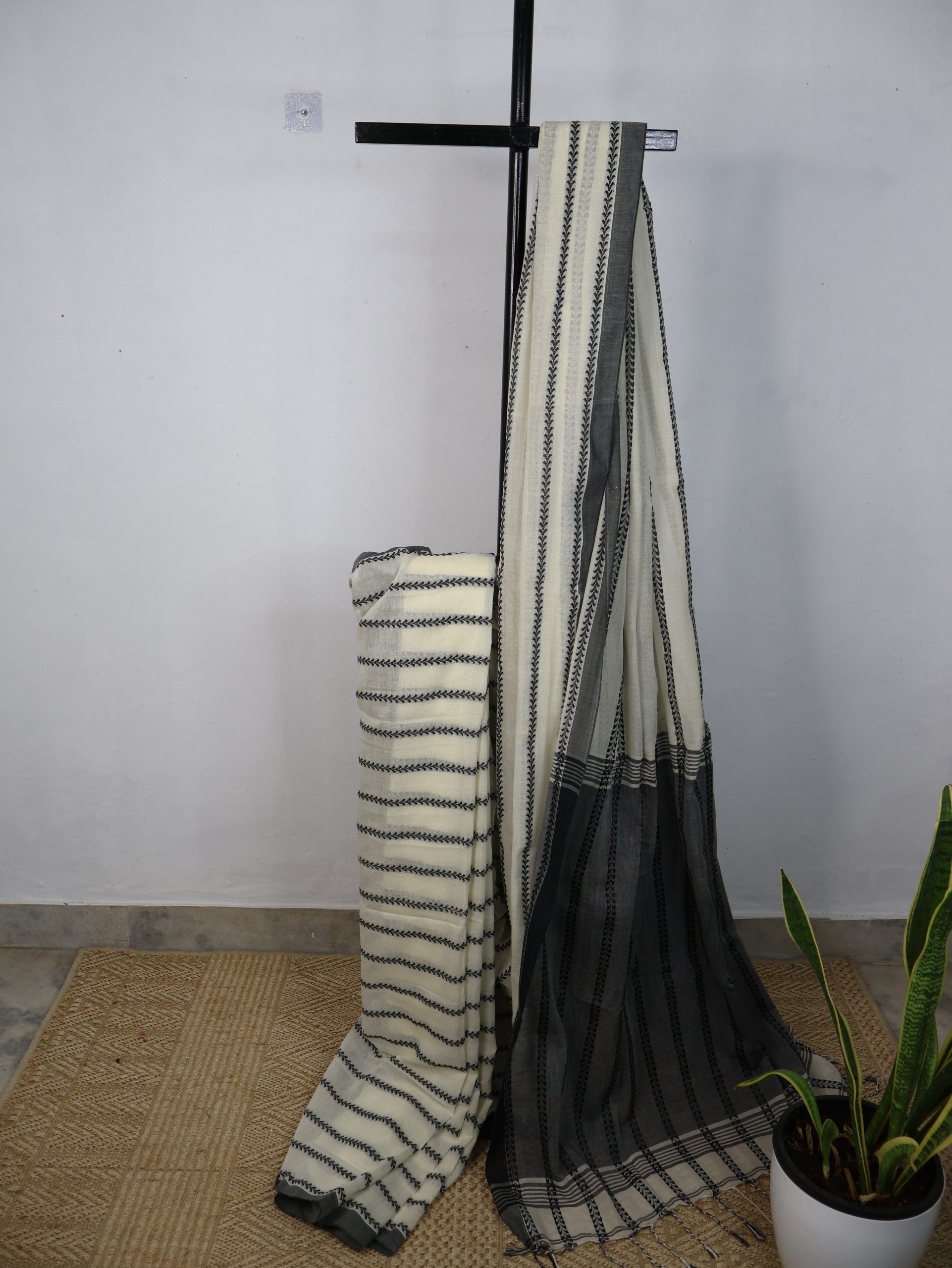 Home Sarees Bengal Mull Cotton Saree Black & Offwhite Bengal Mul Cotton Saree