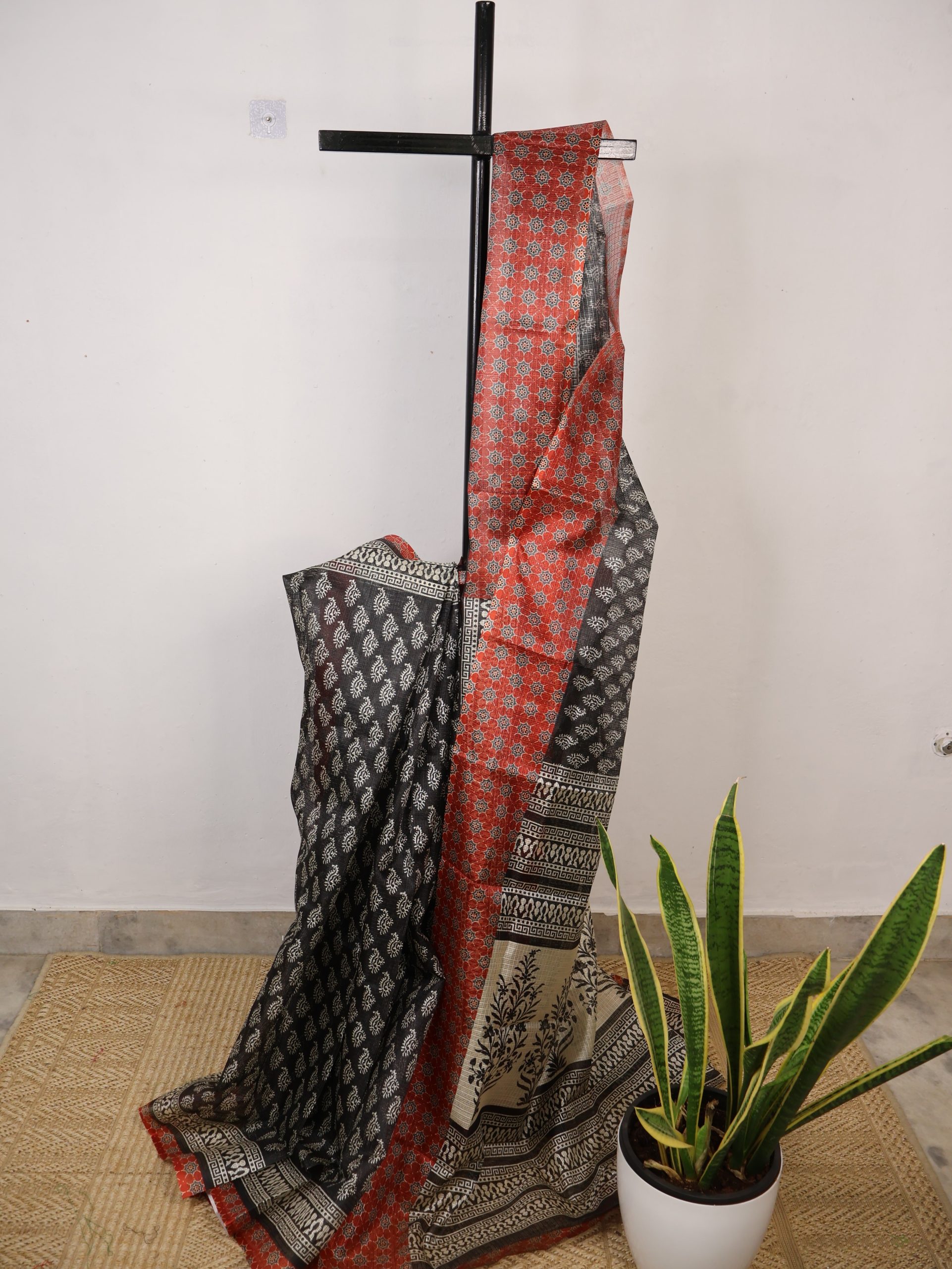 Home Sarees Semi Kota Saree Black Semi-Kota Saree