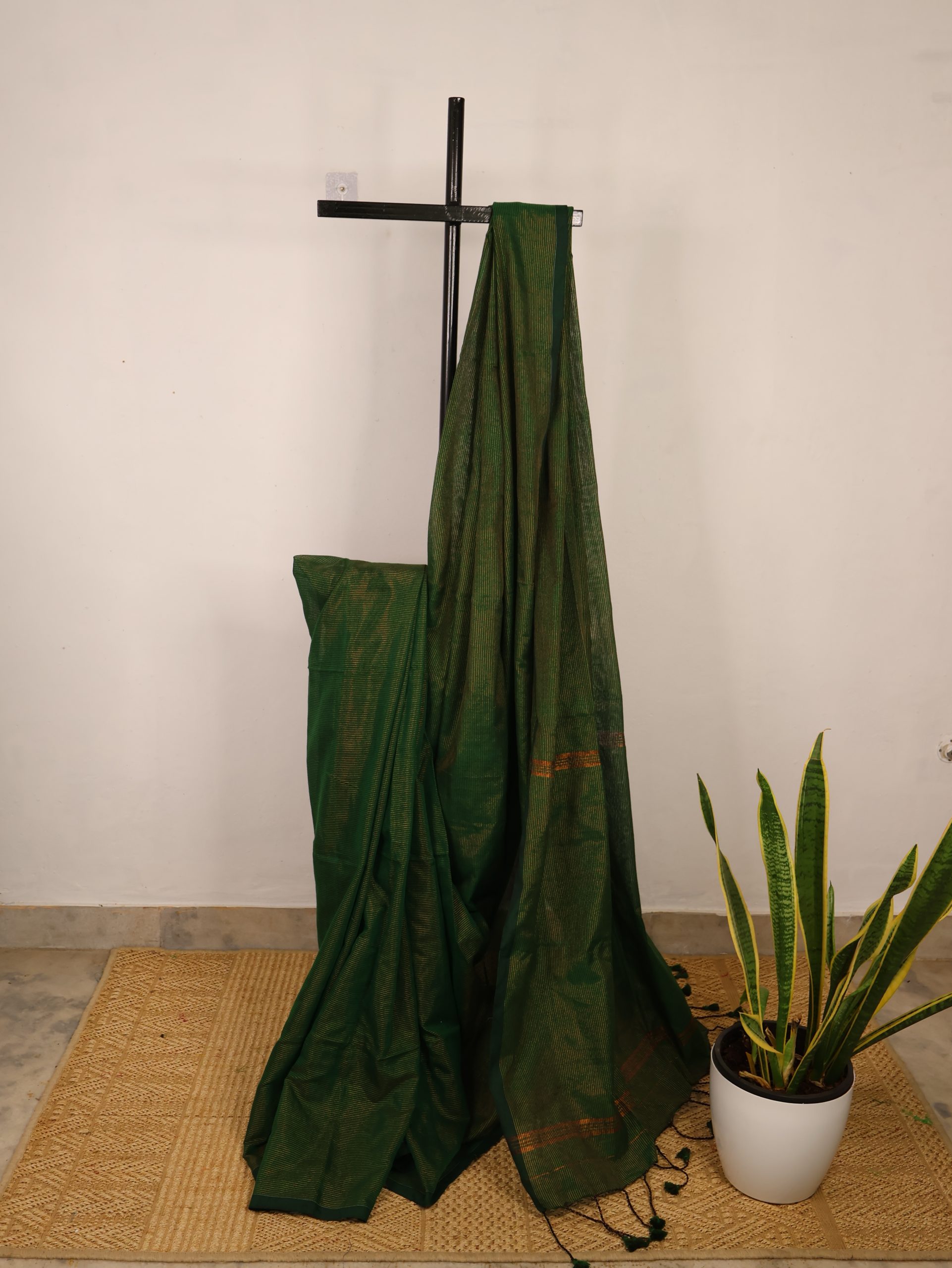 Home Sarees Mul Cotton Saree With Zari Lines Bottle Green Mul Cotton Saree With Zari Lines