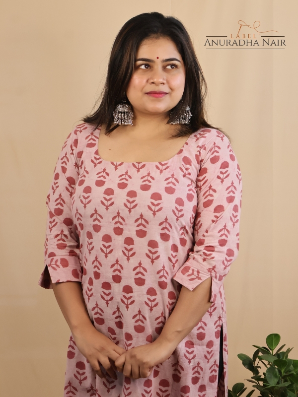 Light Pink Dabu Cotton kurti