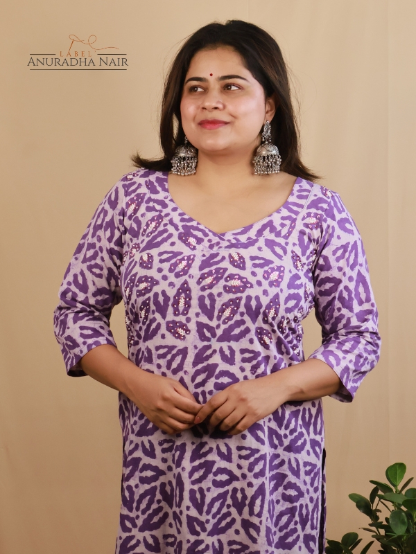 Lavendar Dabu Hand Block Kurti