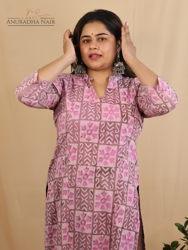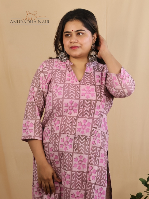 Home New Arrivals Pink & Brown Dabu Handblock Kurti