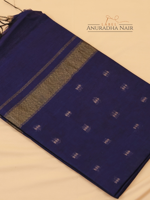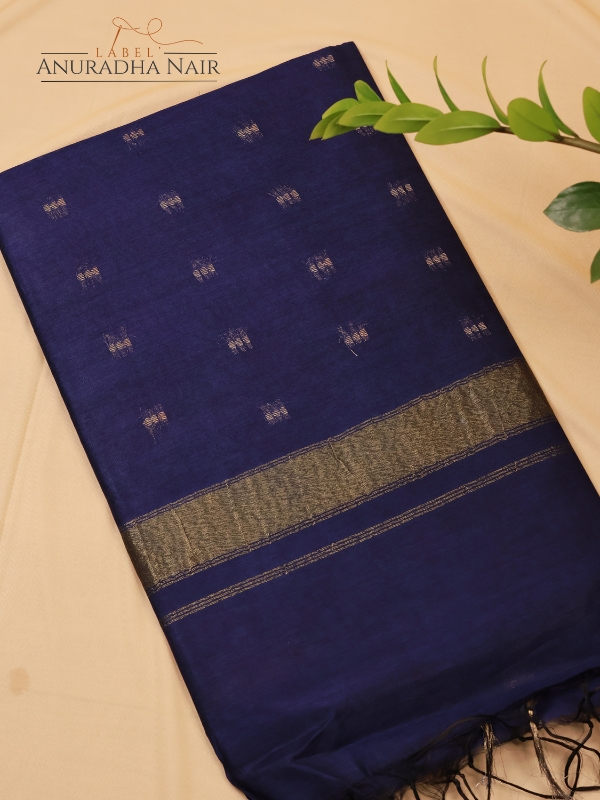Dark Blue Semi Tussar Slub Saree With Bullis