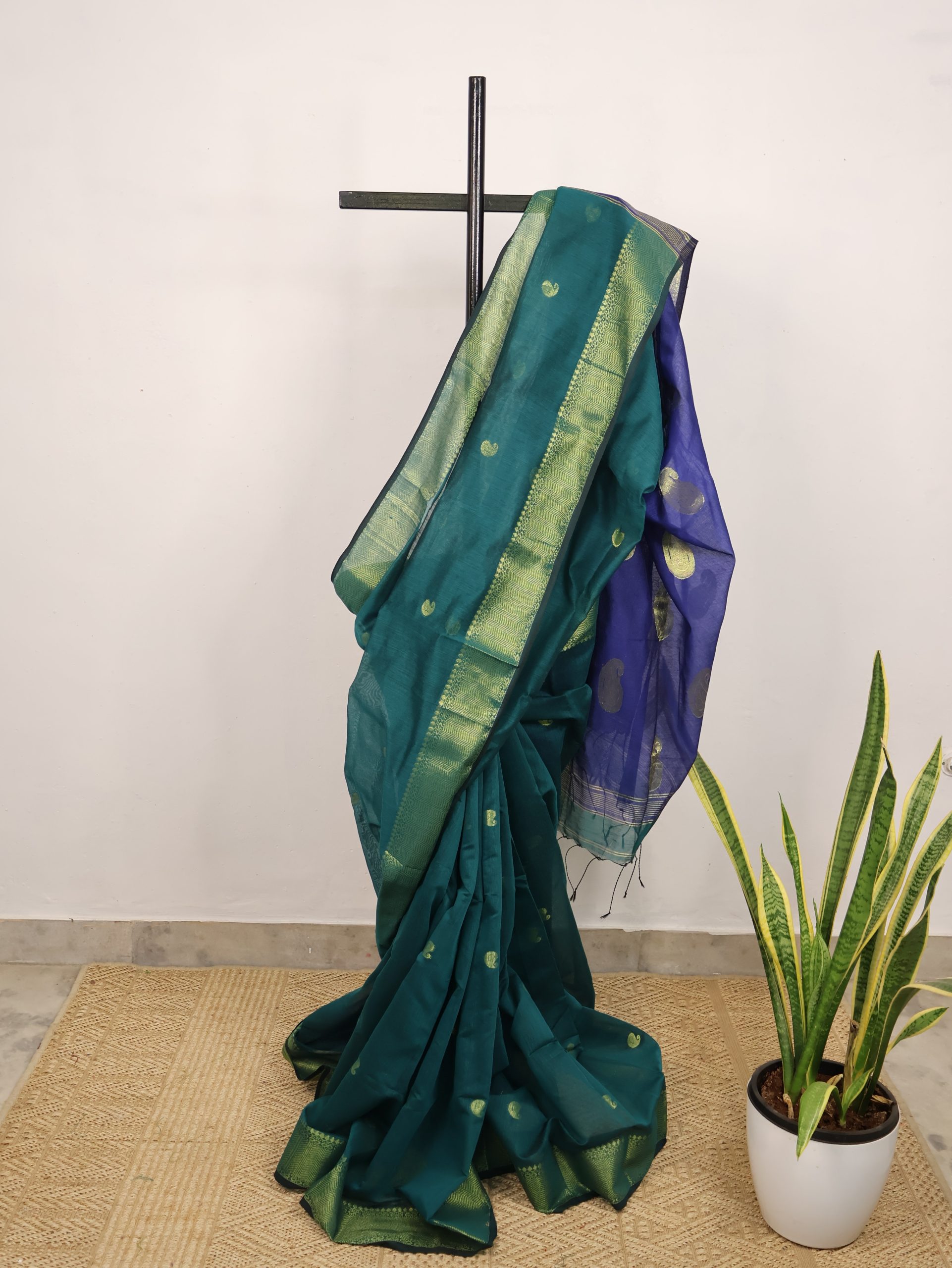 Dark Green & Navy Blue Chanderi Cotton Saree