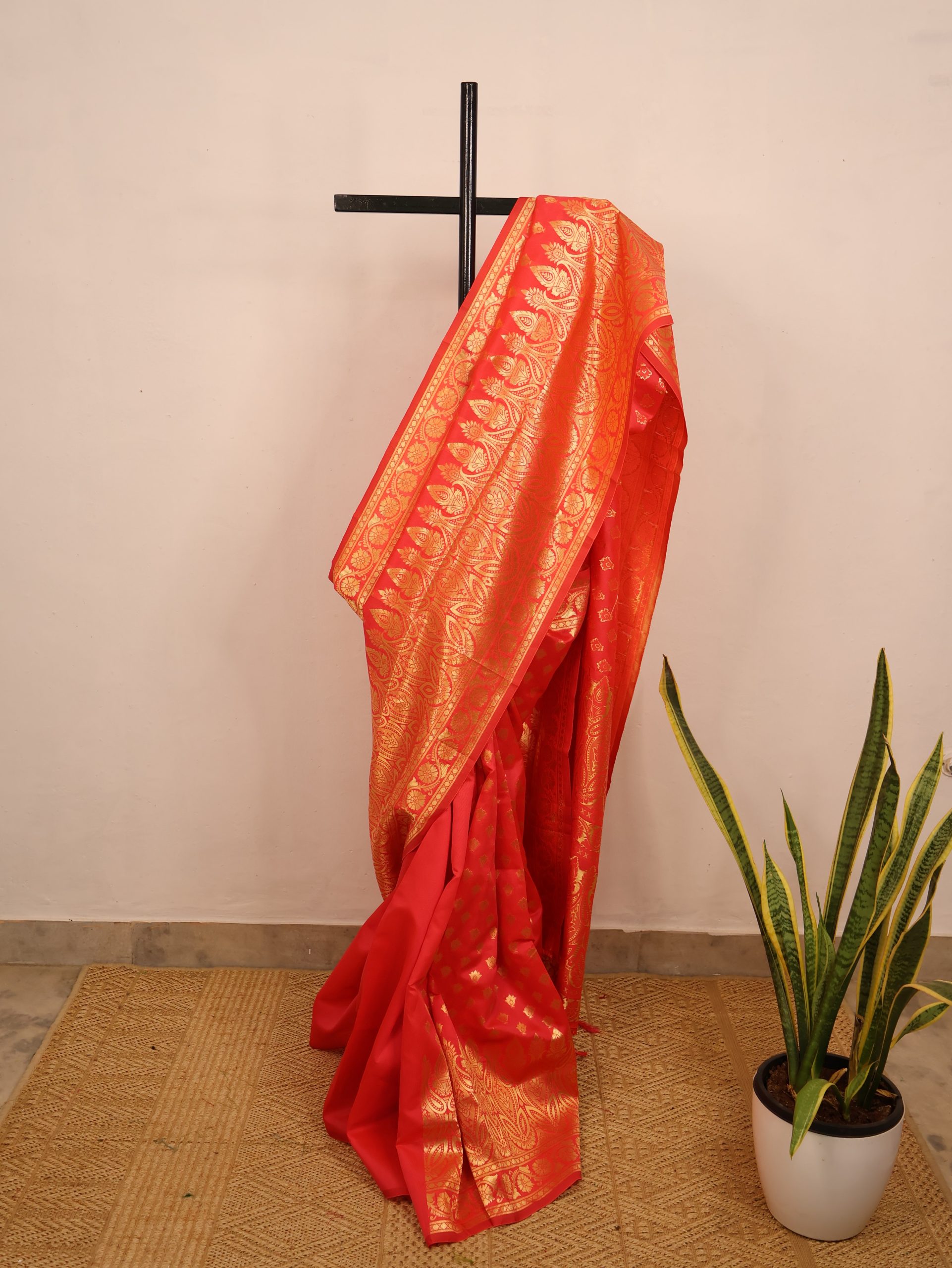 Home Sarees Semi-Dharmavaram silk saree Dark Peach Semi-Dharmavaram Silk Saree