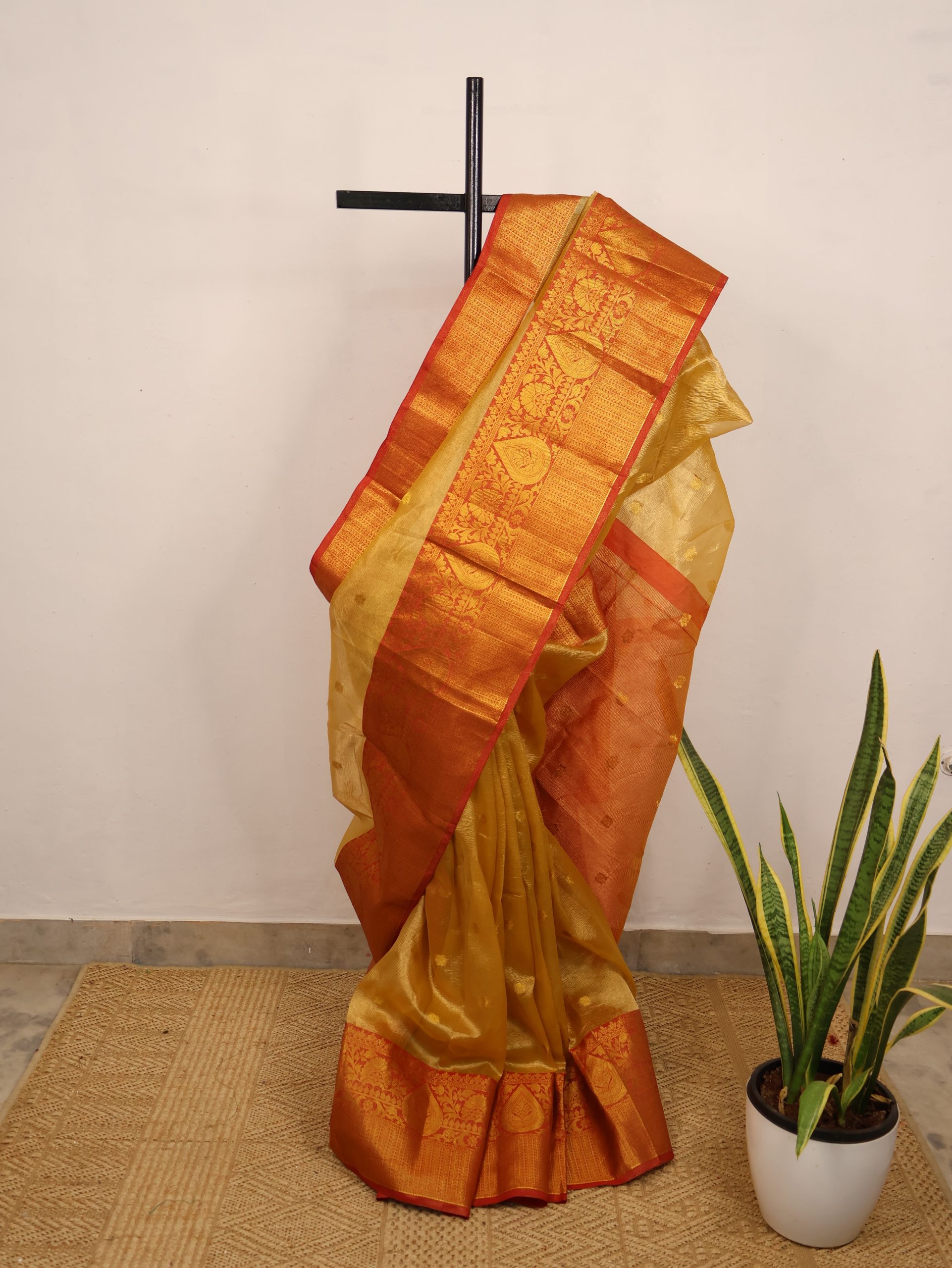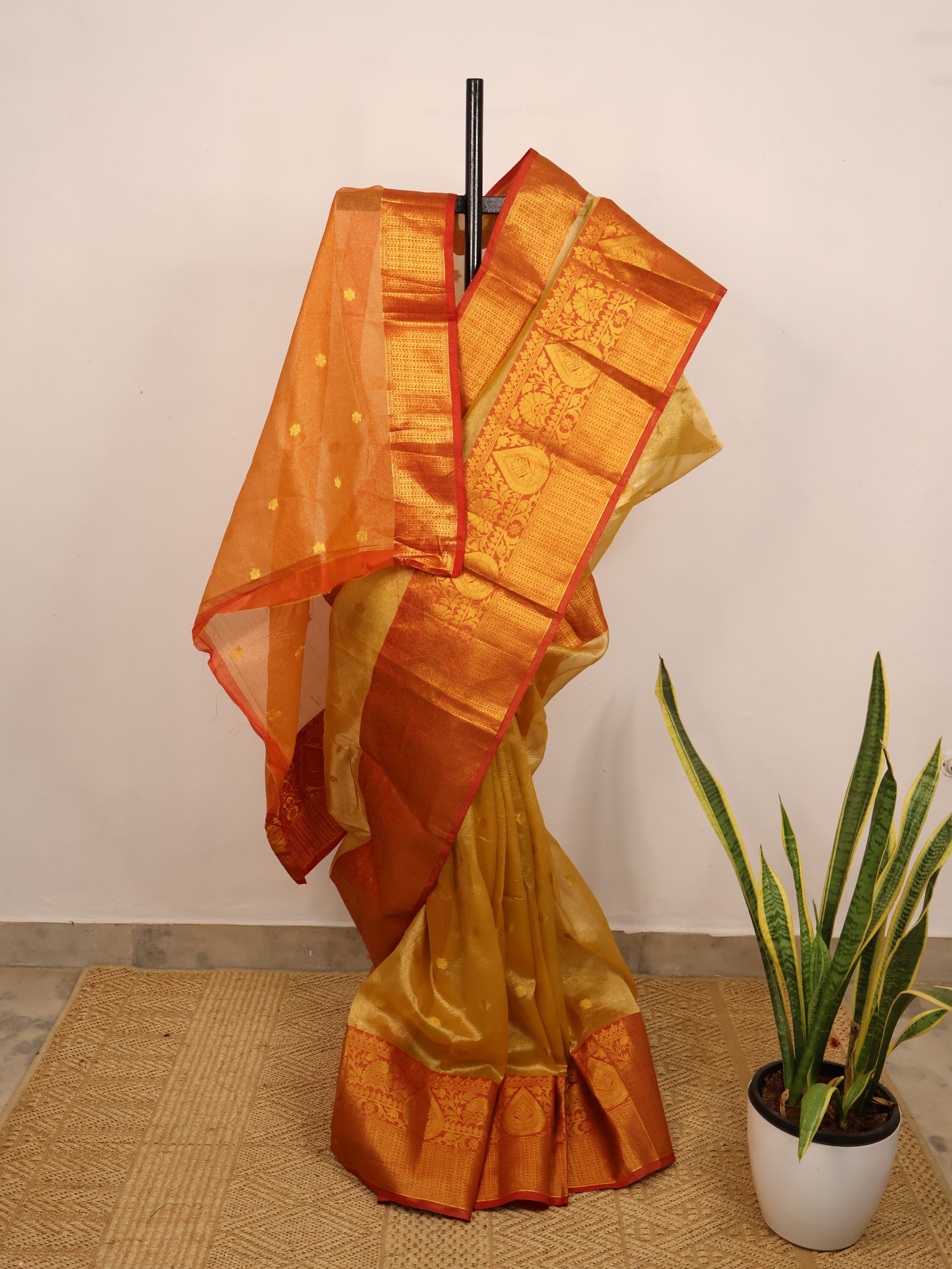 Gold & Red Semi-Tissue Saree