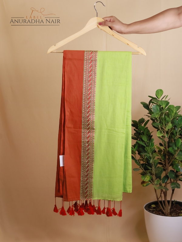 Home Sarees Semi Kota Saree Green Mul Mul Temple Border Saree Set 2
