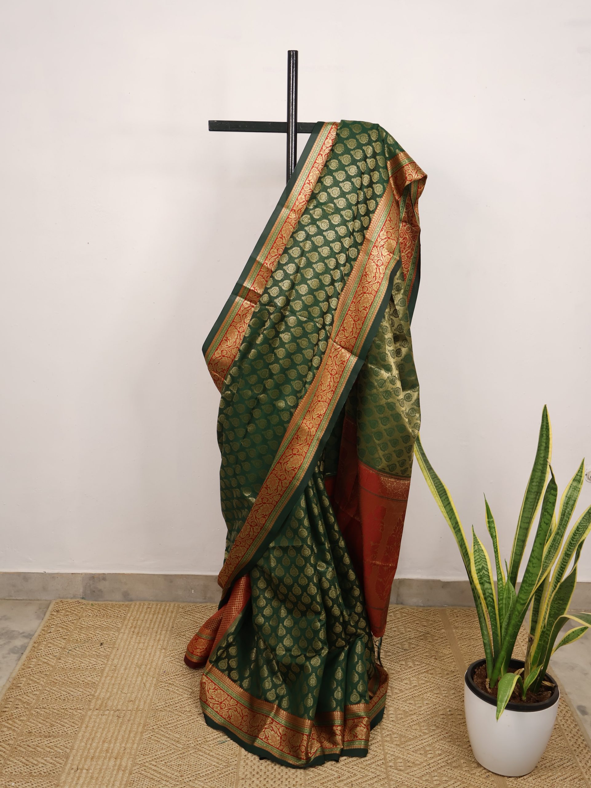 Home Sarees Semi-Banarasi Green & Red Semi-Banarasi Saree
