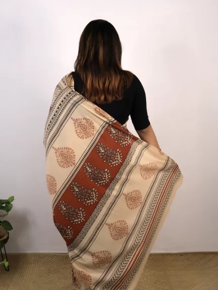 Crimson, off-white & black Jaipuri Kahani Saree
