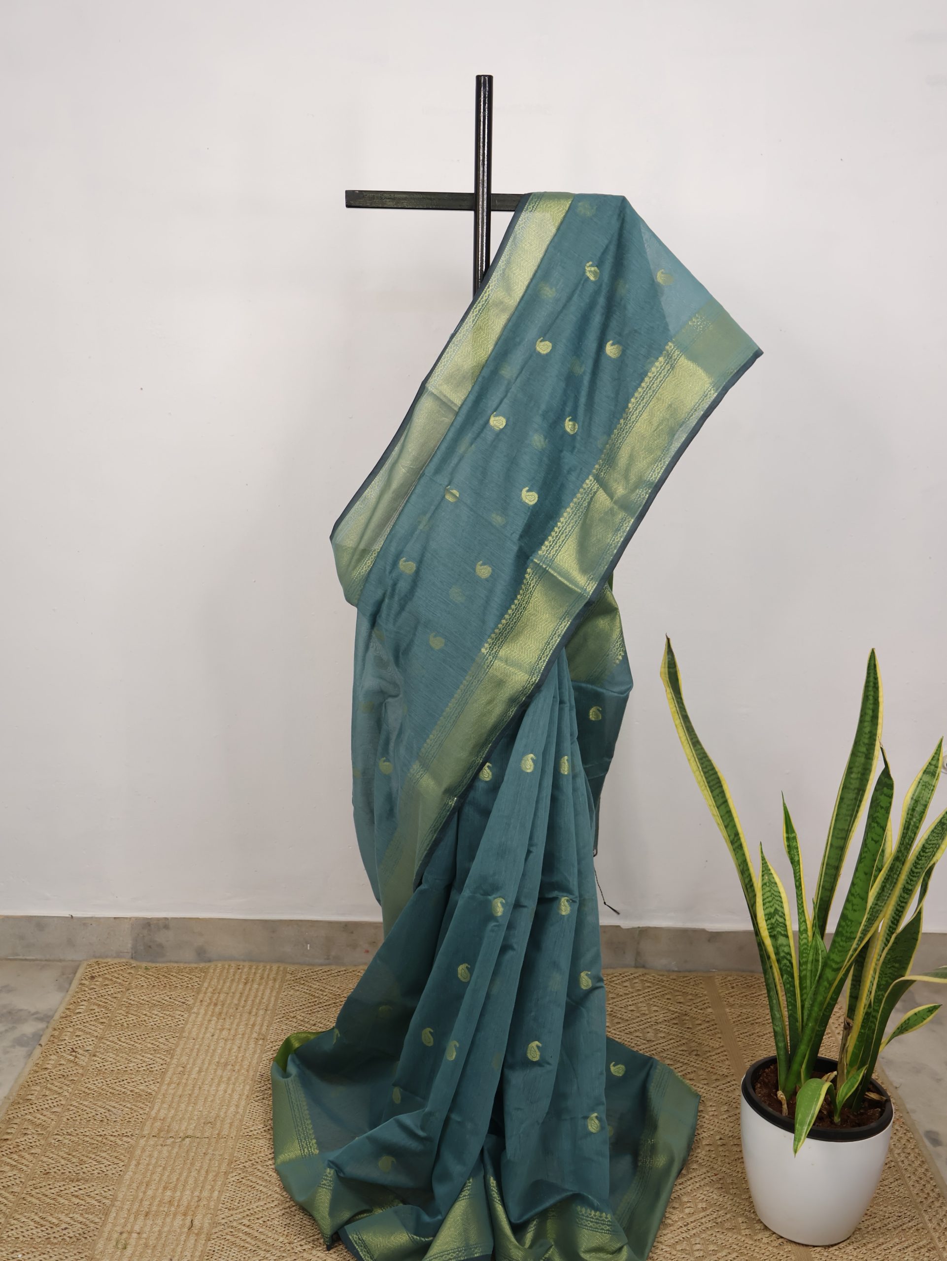 Home Sarees Chanderi Cotton Grey & Olive Chanderi Cotton Saree