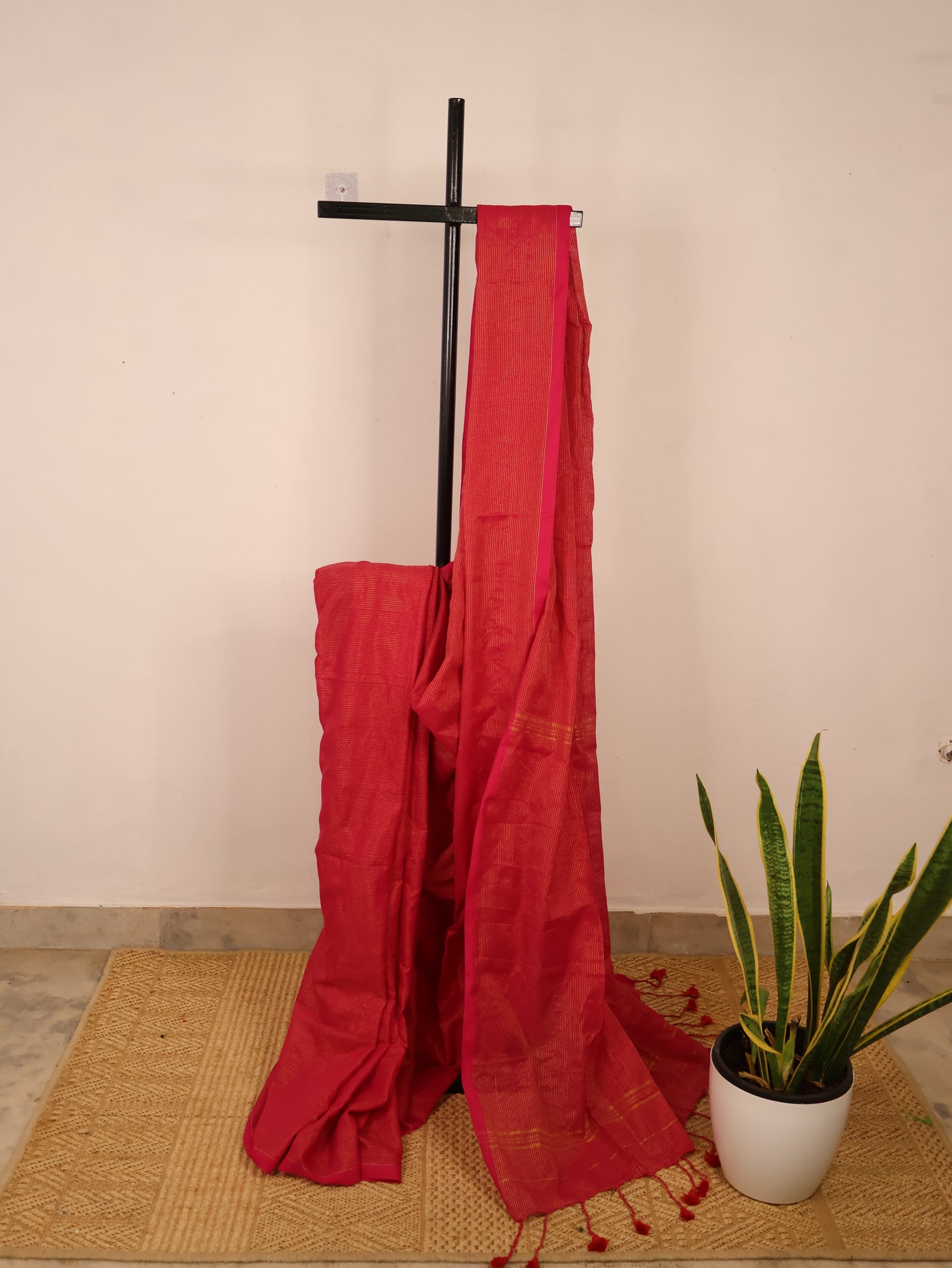 Home Sarees Mul Cotton Saree With Zari Lines Magenta Mul Cotton Saree With Zari Lines