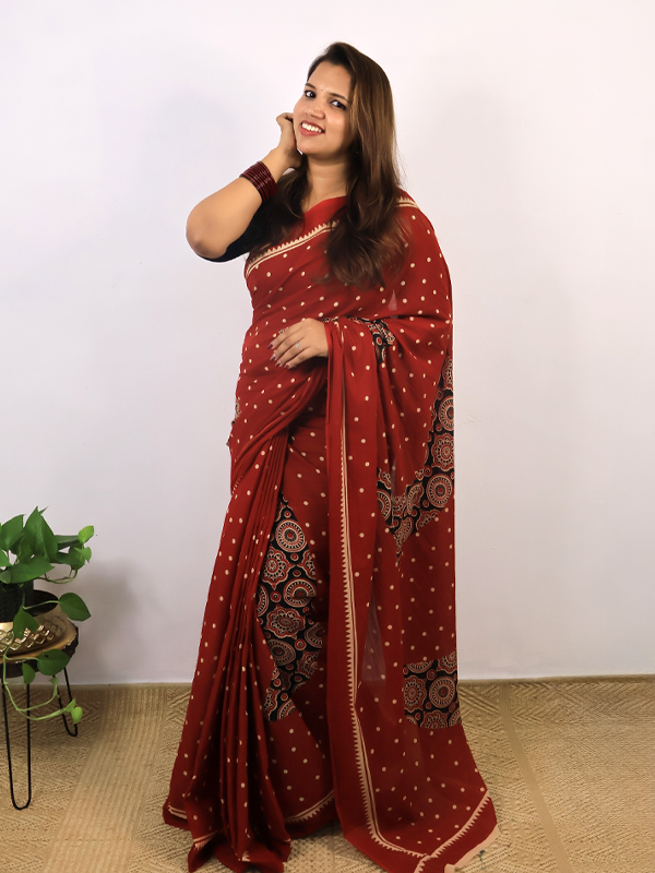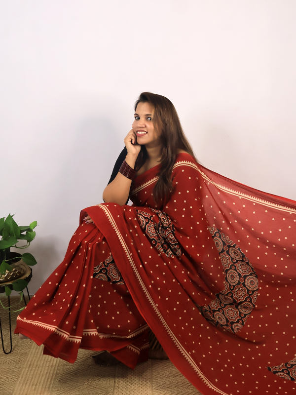 Home Sarees Mul Mul Jaipuri Kahani Maroon, off-white & black Jaipuri Kahani