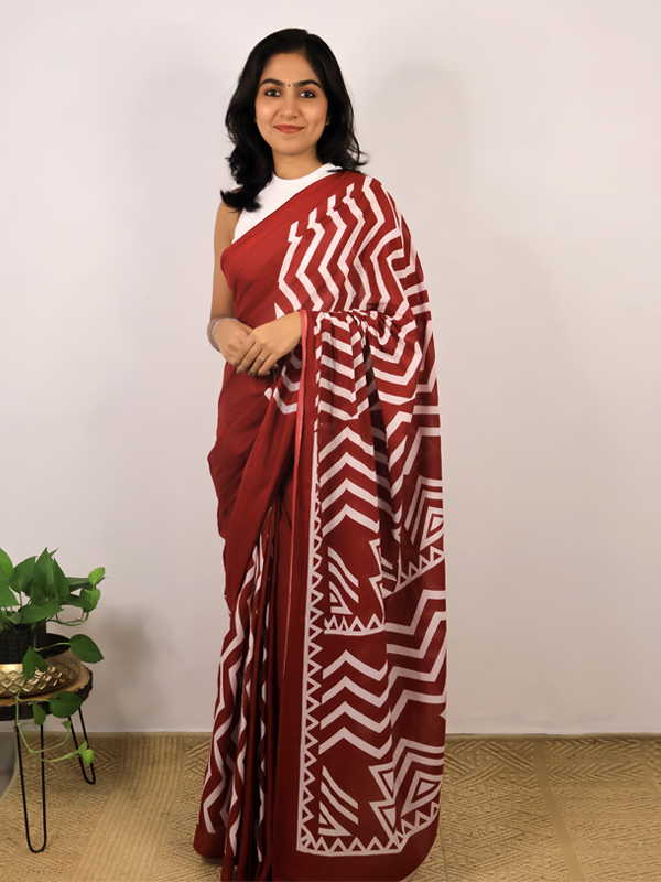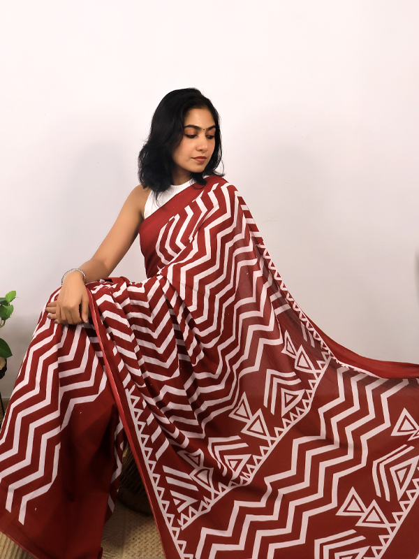 Home Sarees Mul Mul Jaipuri Kahani Maroon & white Jaipuri Kahani Saree