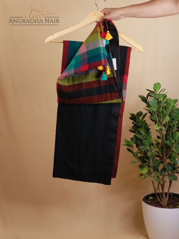 Home Sarees Rangeela Mul Cotton Saree Black Mul Mul cotton Check Saree Set 1