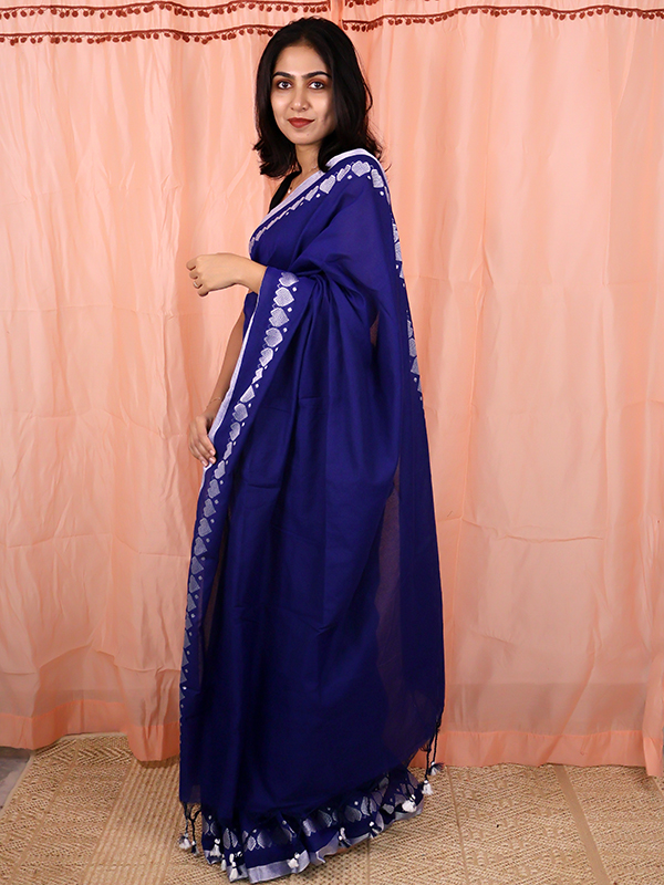 Home Sarees Mul Mul Dhadak Navy Blue With Pearl-White Dhadak Saree