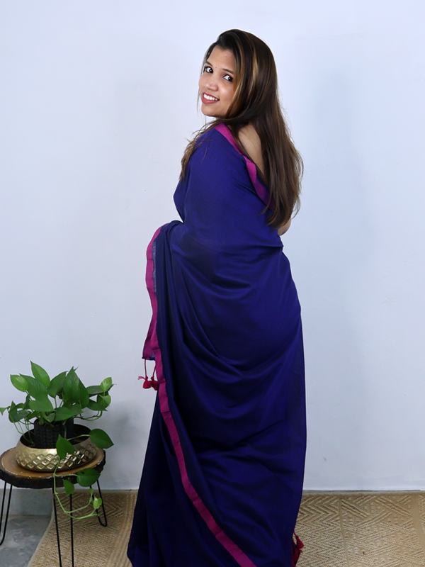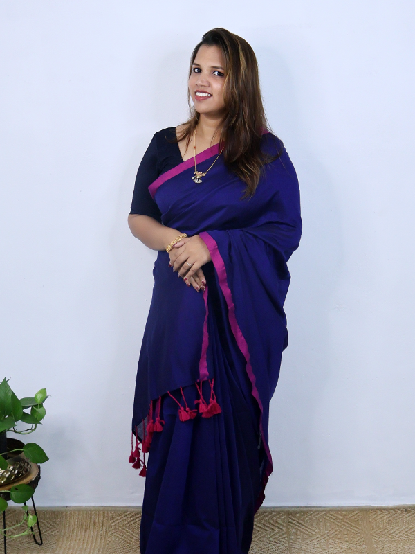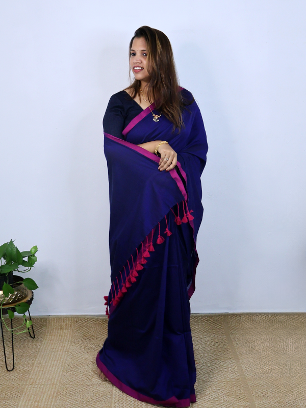 Navy blue with pink border saree
