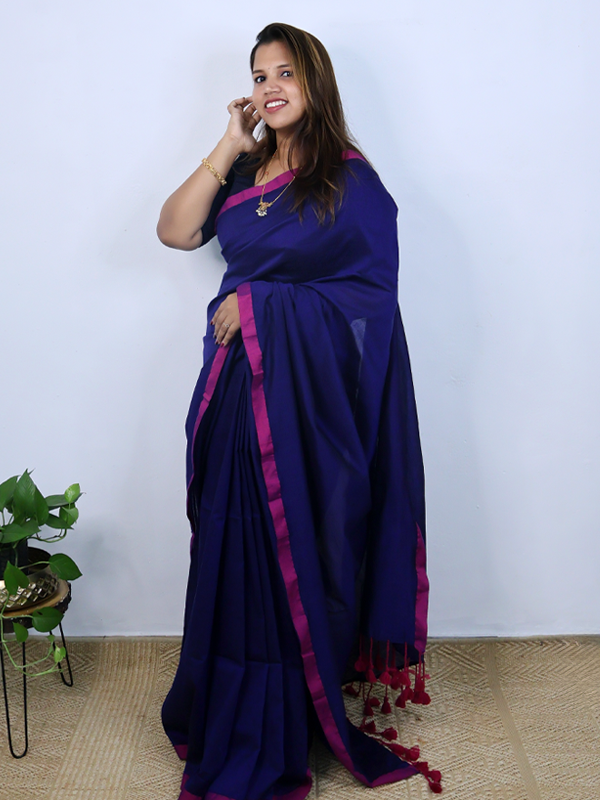 Home Sarees Mul Mul Sthree Navy blue with pink border saree