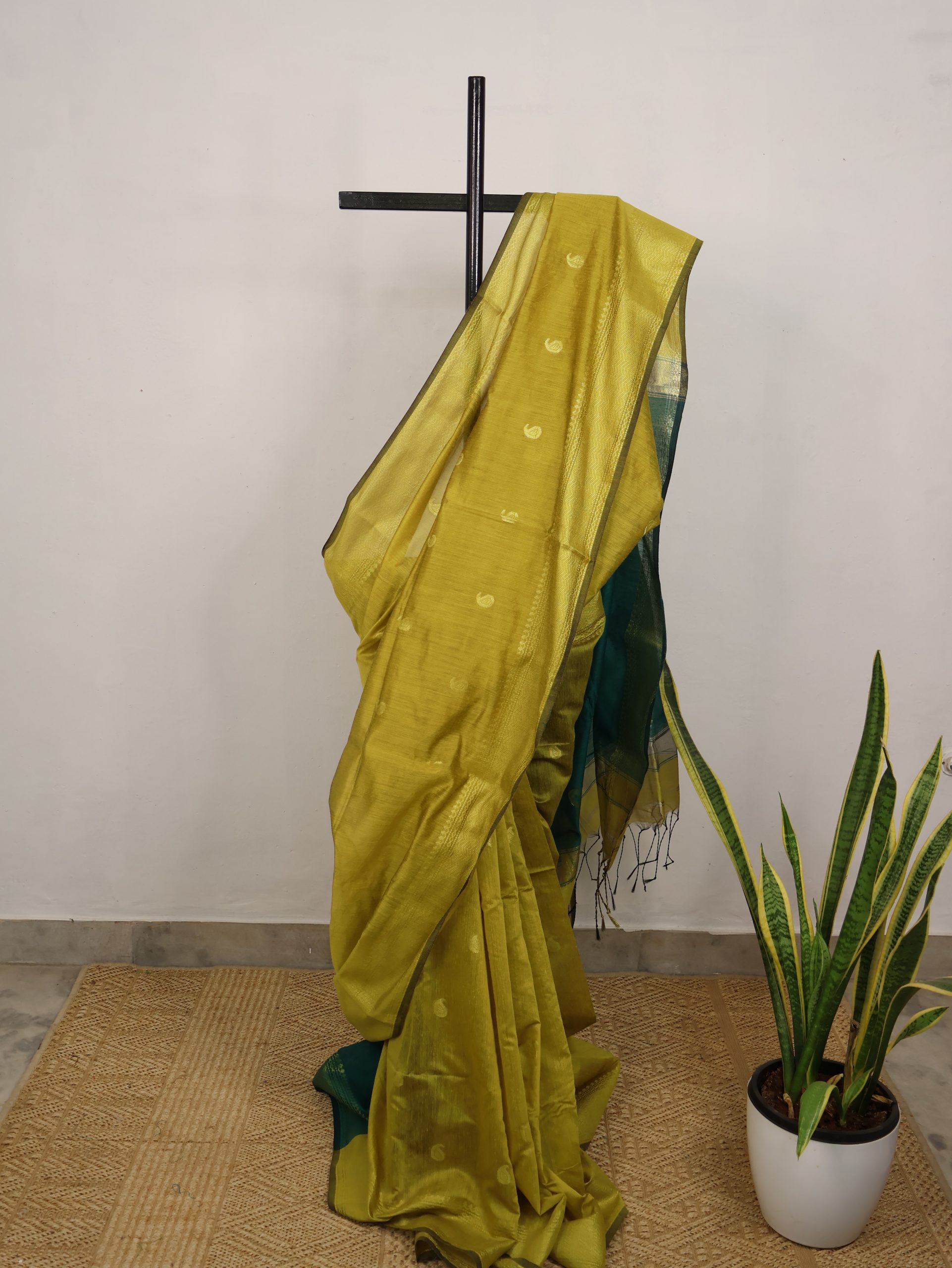 Home Sarees Chanderi Cotton Olive Green & Dark Green Chanderi Cotton Saree