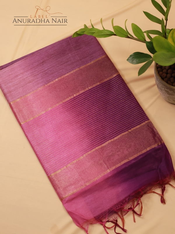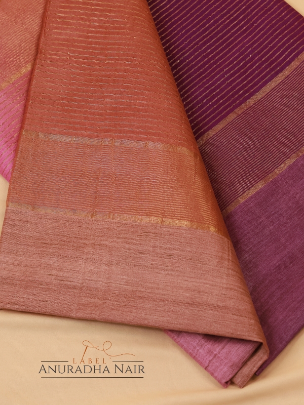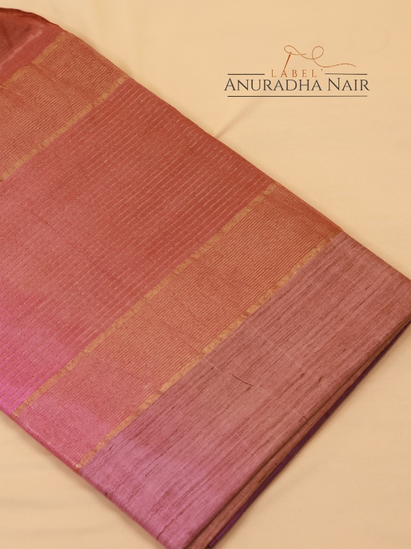 Onion Pink & Bronze Semi Tussar Slub Saree With Lines