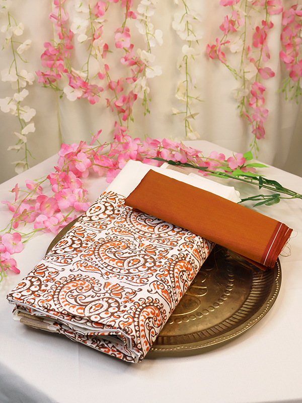 Home Onam Onapudava Orange Paisley Onapudava Kerala Saree