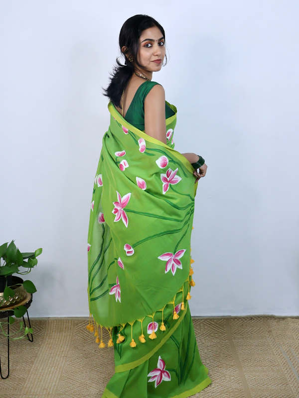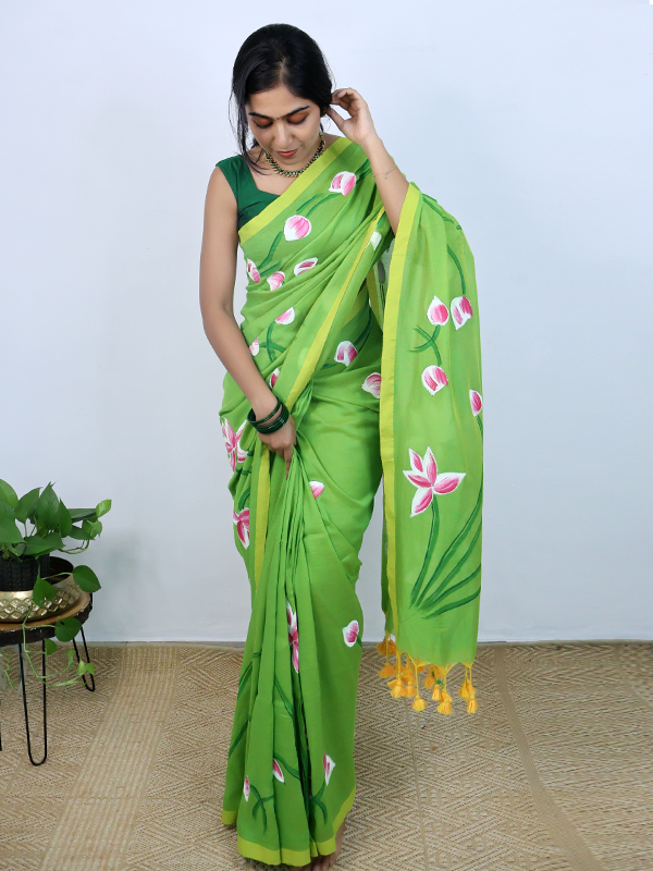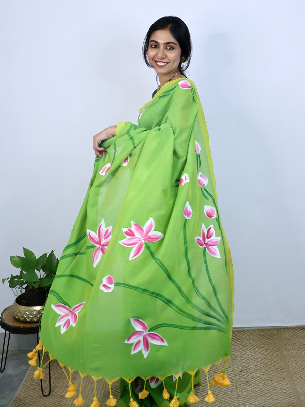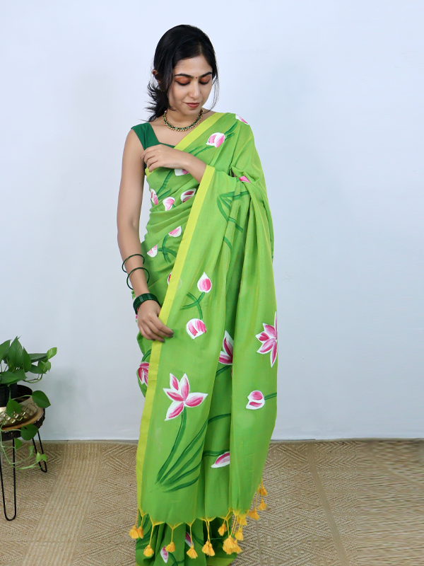Home Sarees Mul Mul Taamarai Parrot green taamarai saree
