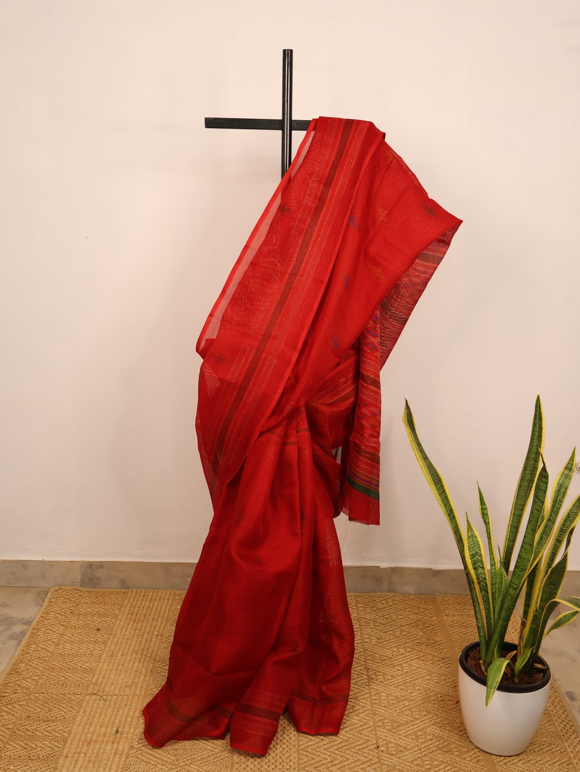 Red Geometrical Semi-Jute Kota Saree