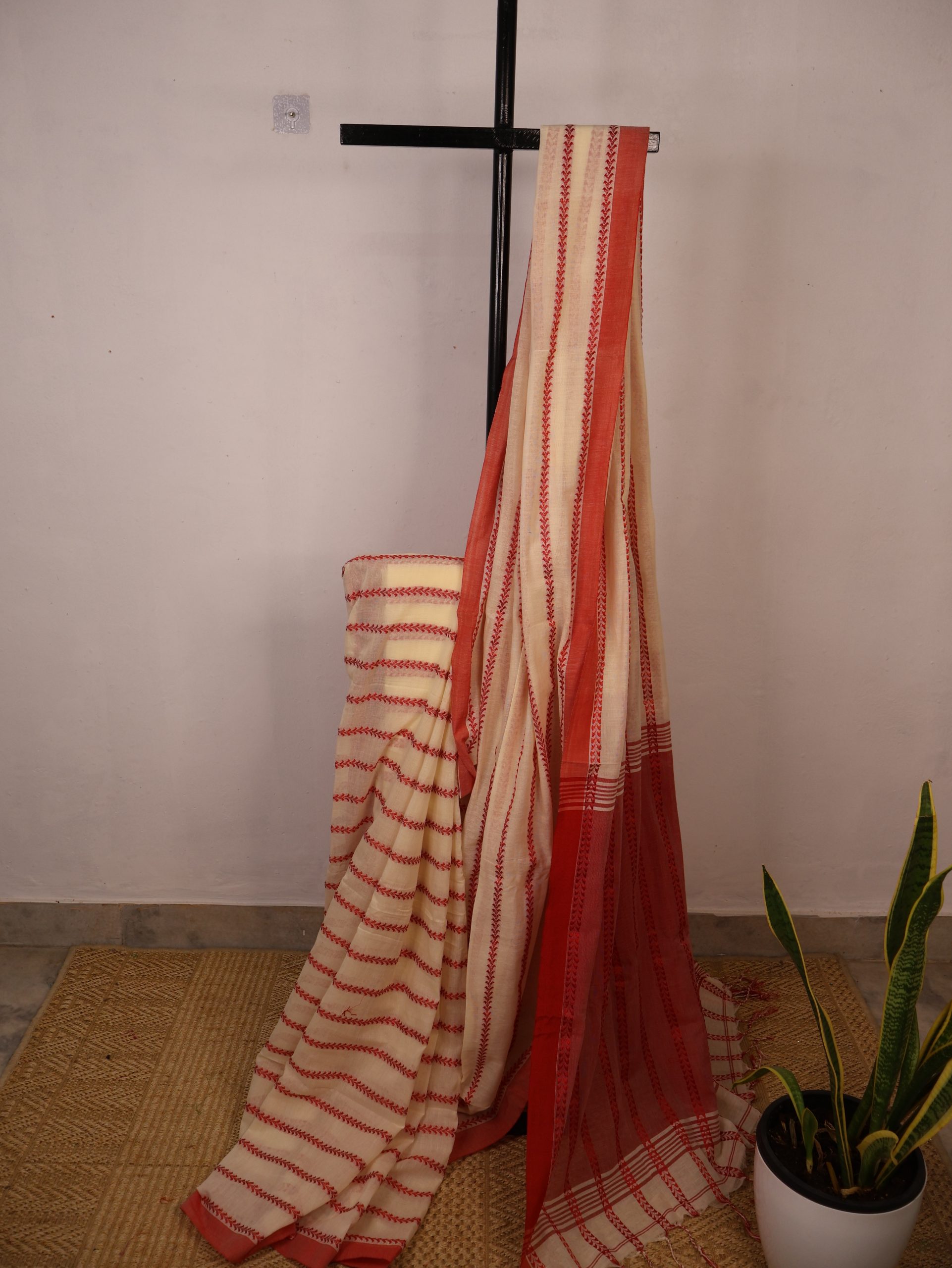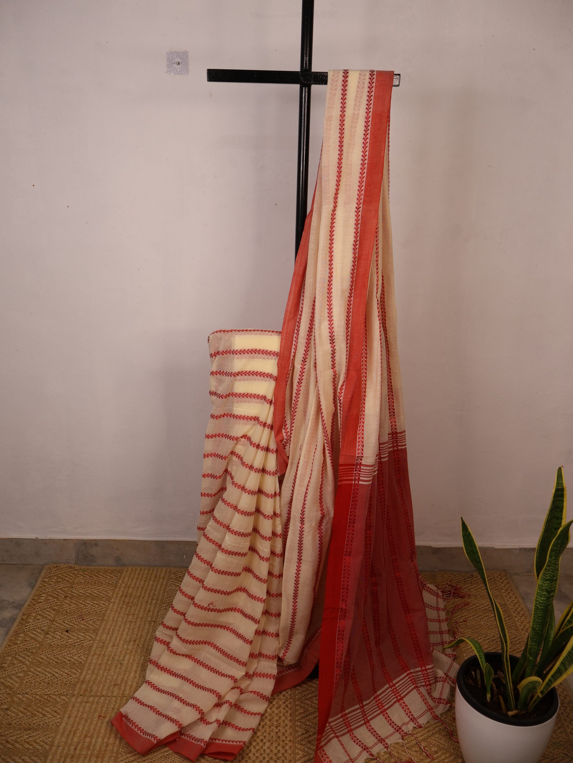 Red & Offwhite Bengal Mul Cotton Saree