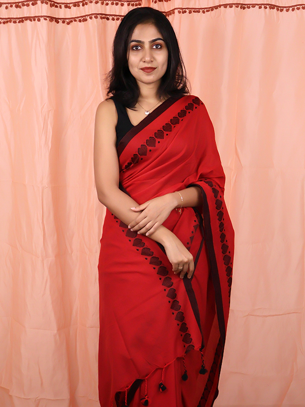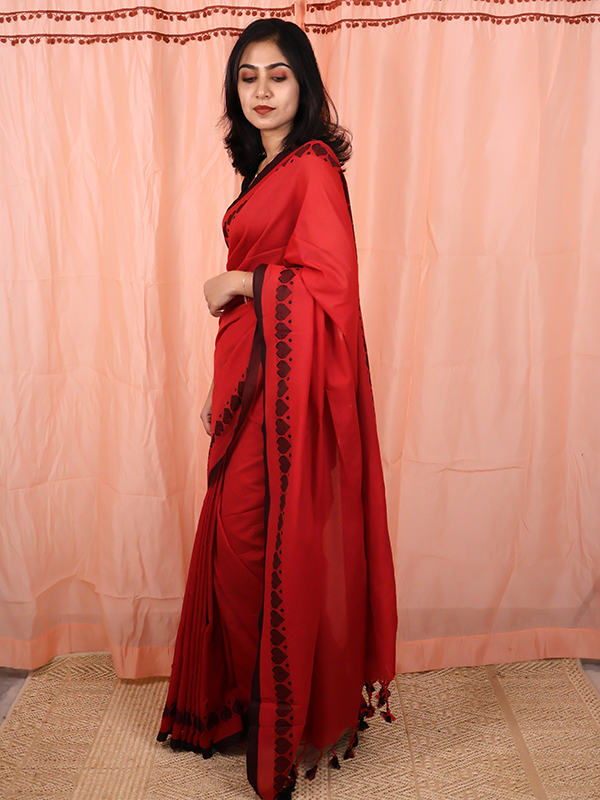 Home Sarees Mul Mul Dhadak Red With Black Dhadak Saree