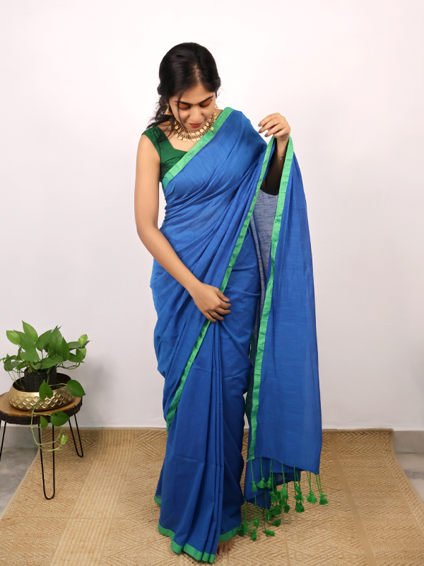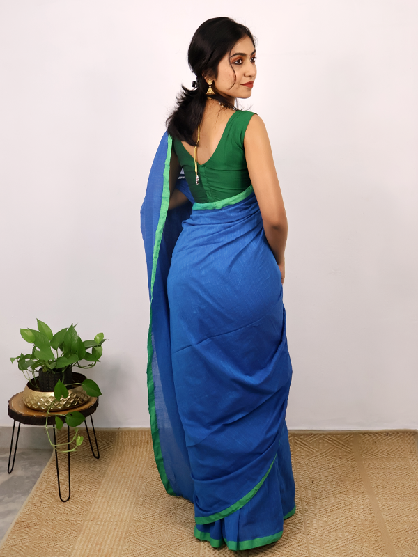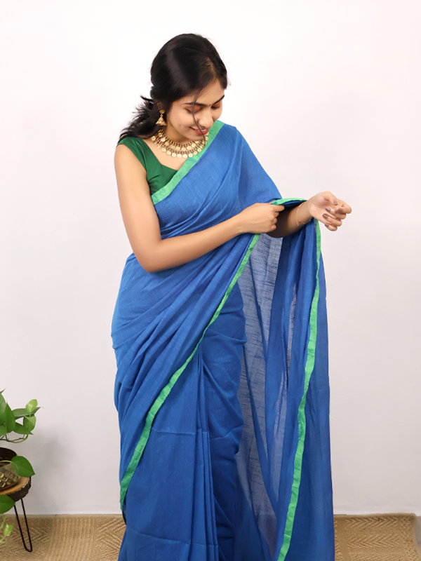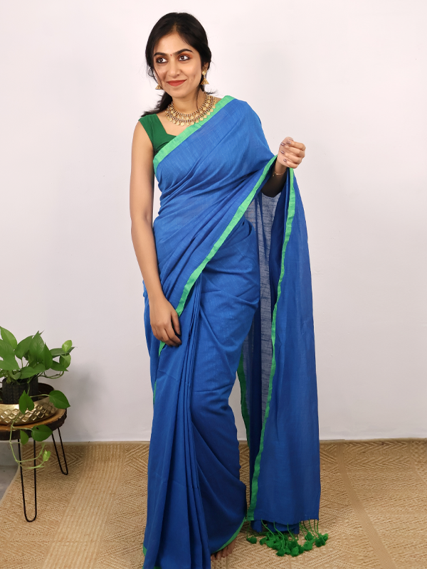 Home Sarees Mul Mul Sthree Saphire blue with parrot green border Saree