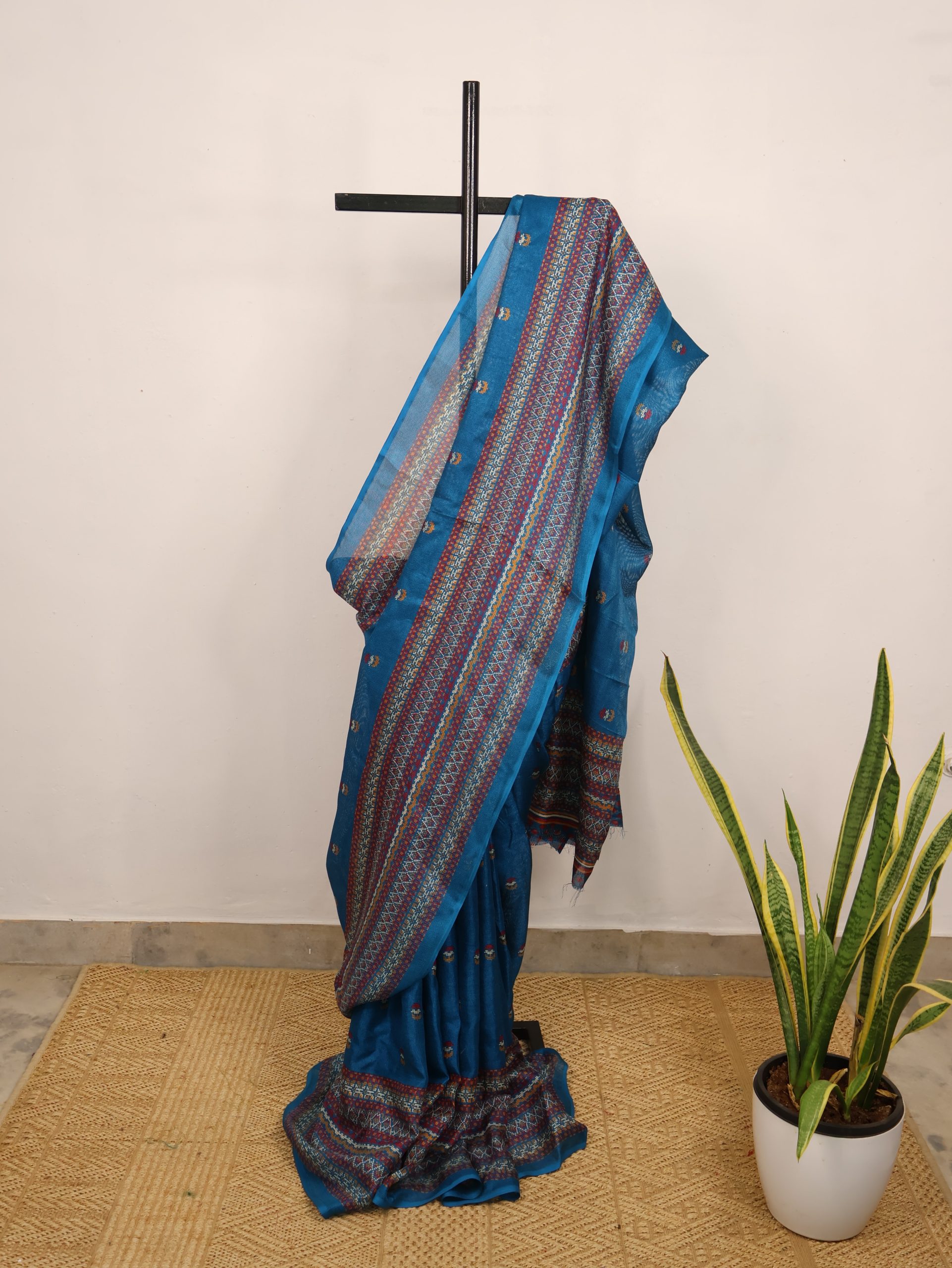 Home Sarees Semi-Jute kota Sea Blue Floral Semi-Jute Kota Saree