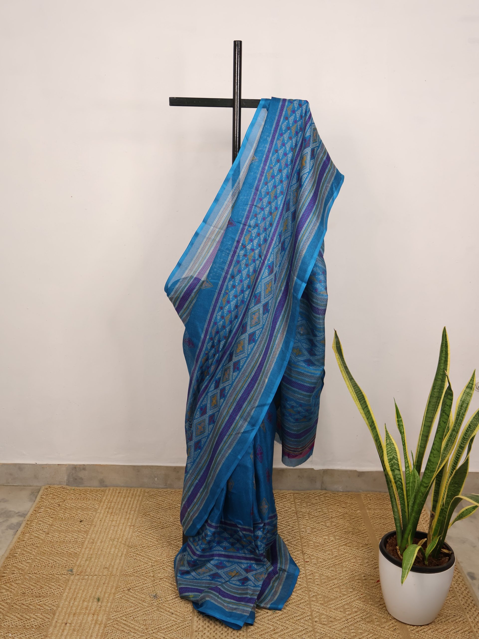 Sea Blue Geometrical Semi-Jute Kota Saree