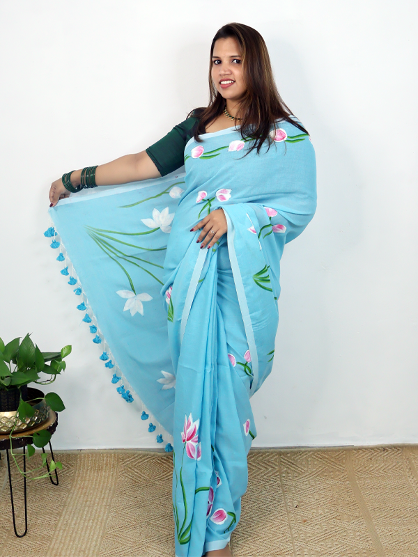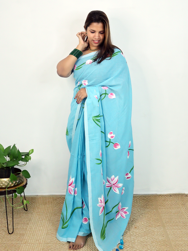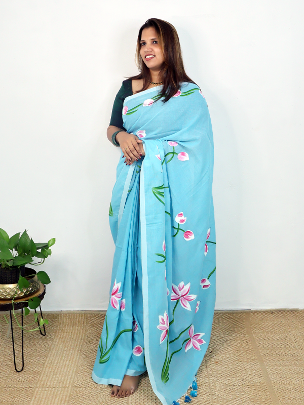 Home Sarees Mul Mul Taamarai Sky blue taamarai saree