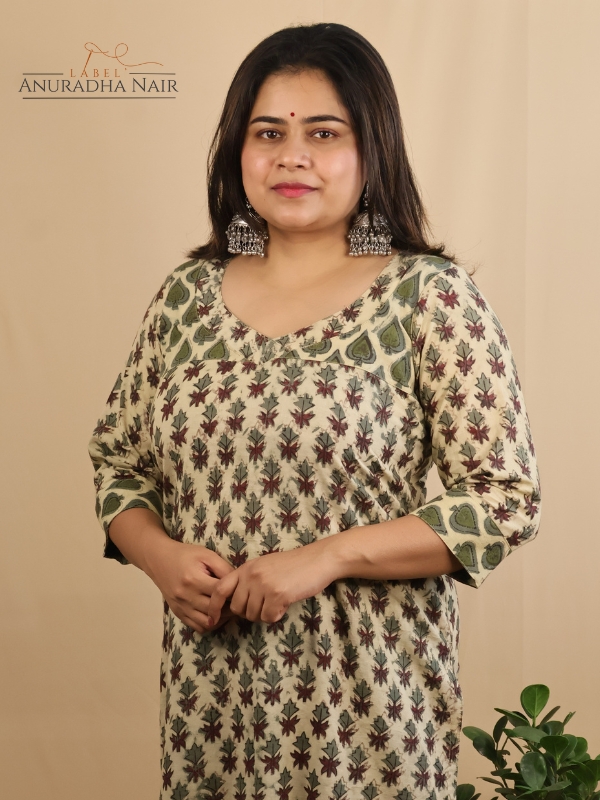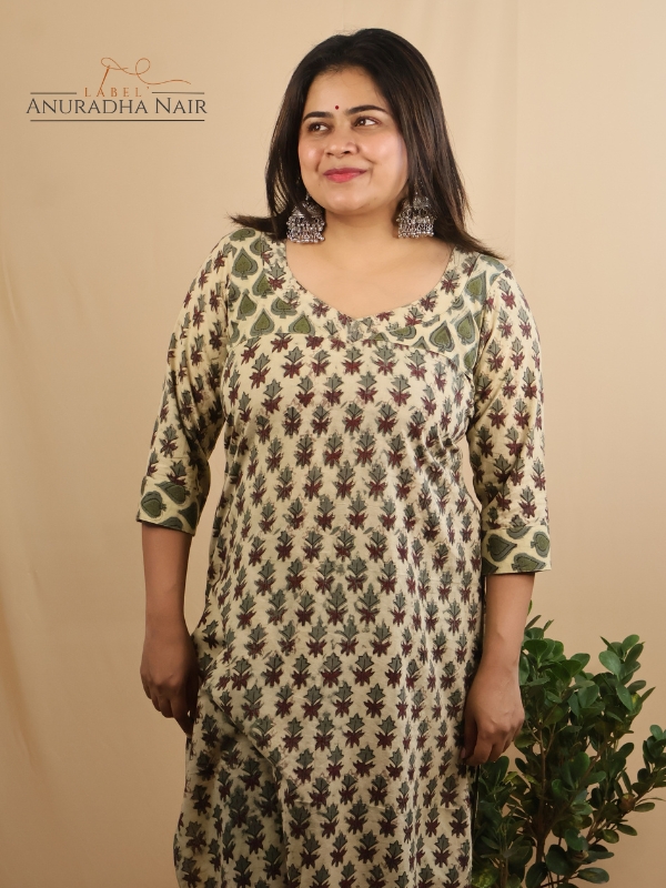 Cream Vanaspathi Pure Handblock Cotton kurti