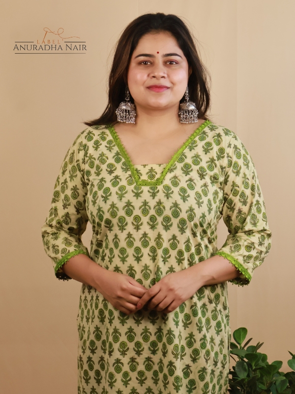 Green Vanaspati Pure Hand Block Cotton Kurti