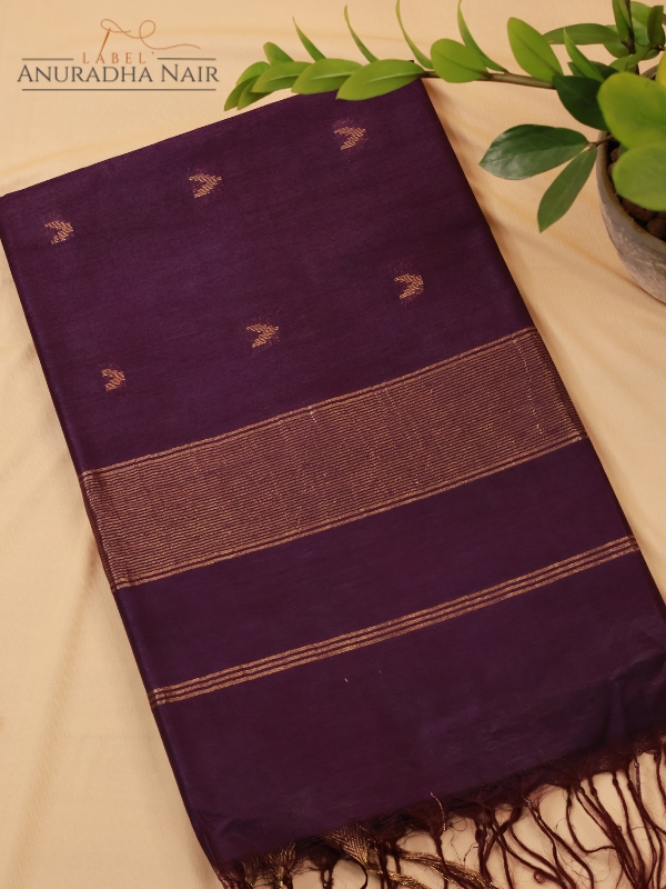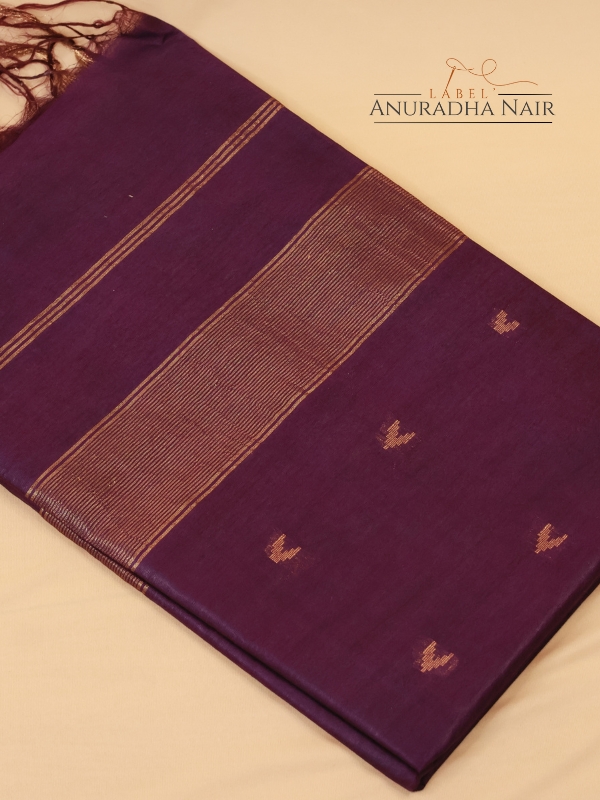 Home Sarees Violet Semi Tussar Slub Saree With Bullis