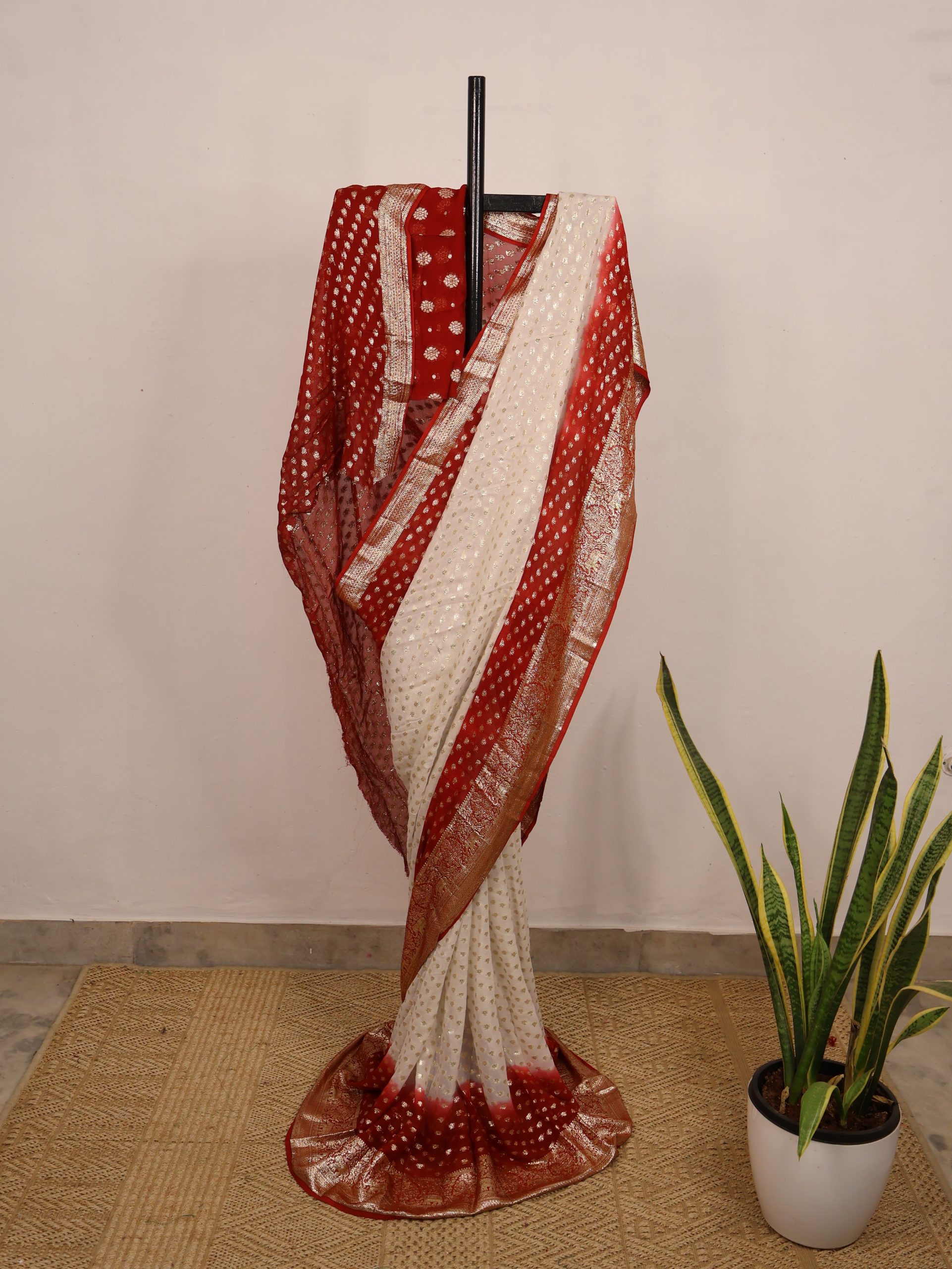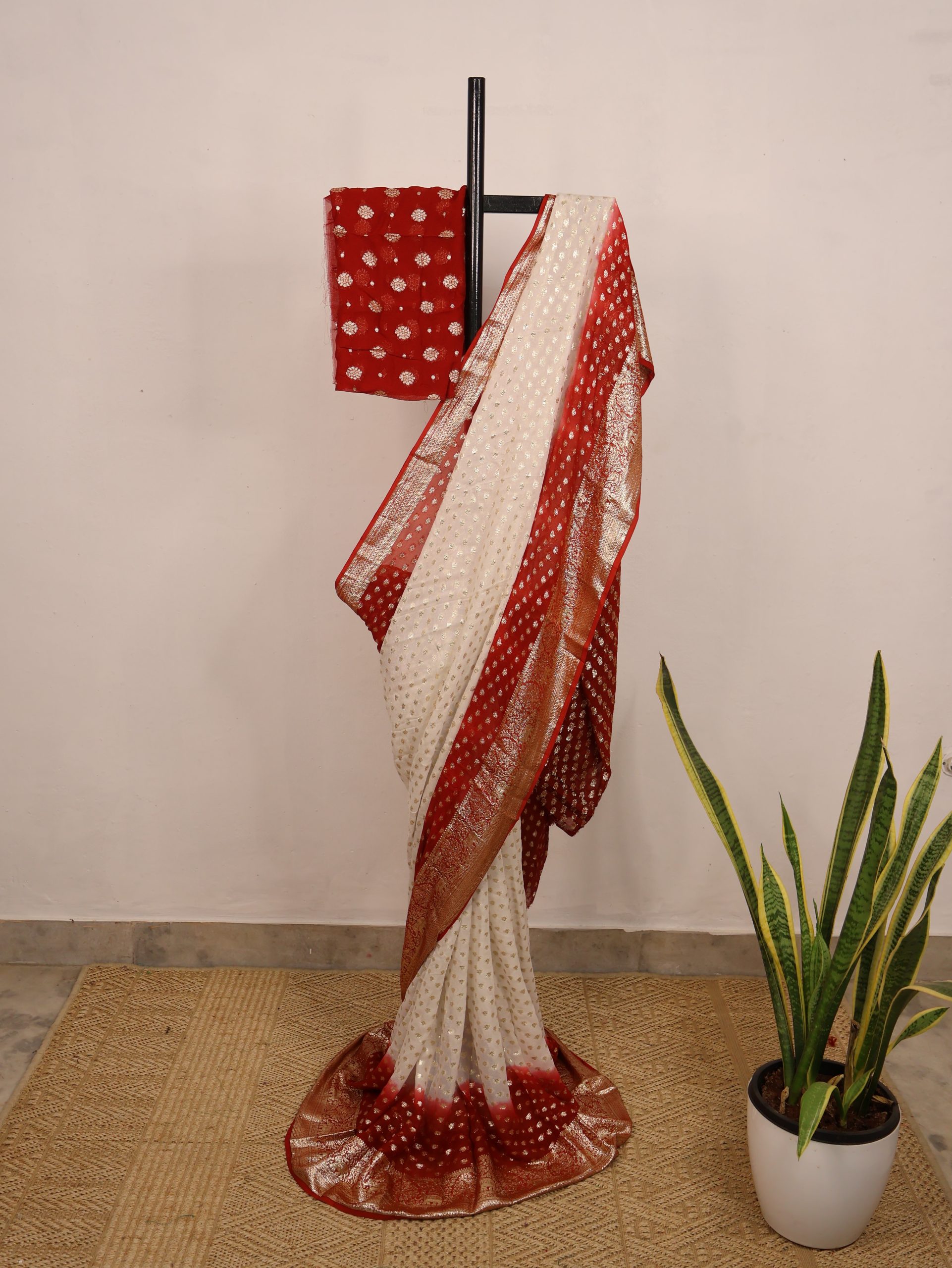 Home Sarees Foil Chiffon White & Red Foil Chiffon Saree