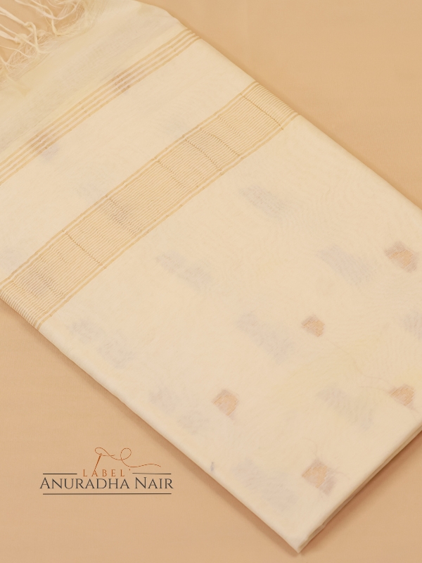 White Semi Tussar Slub Saree With Bullis