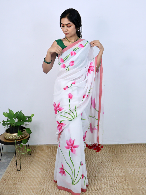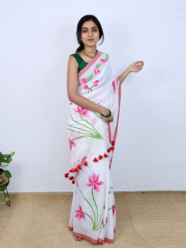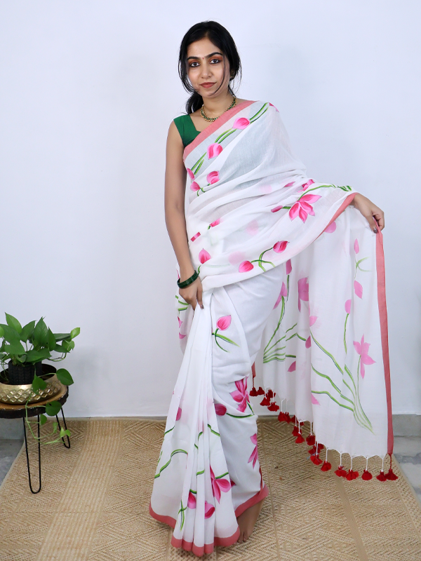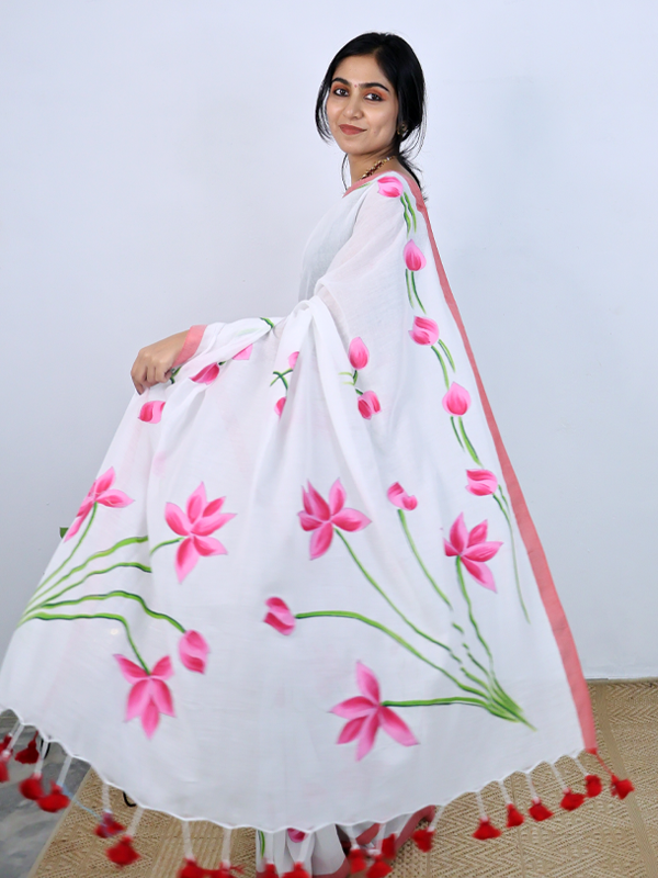 Home Sarees Mul Mul Taamarai White taamarai saree