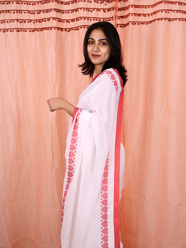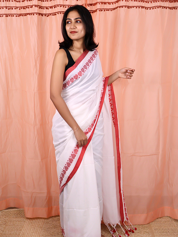 Home Sarees Mul Mul Dhadak White With Red Dhadak Saree
