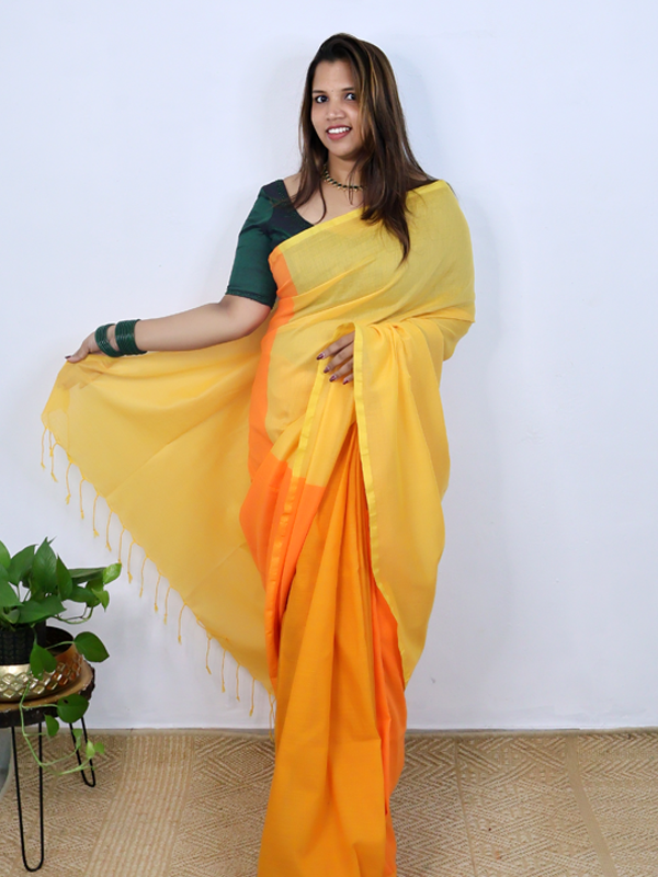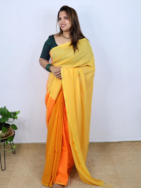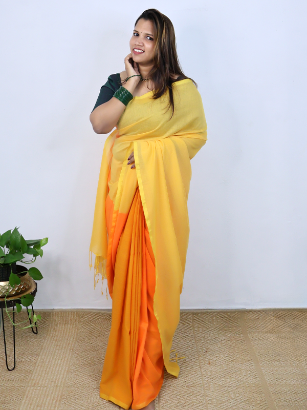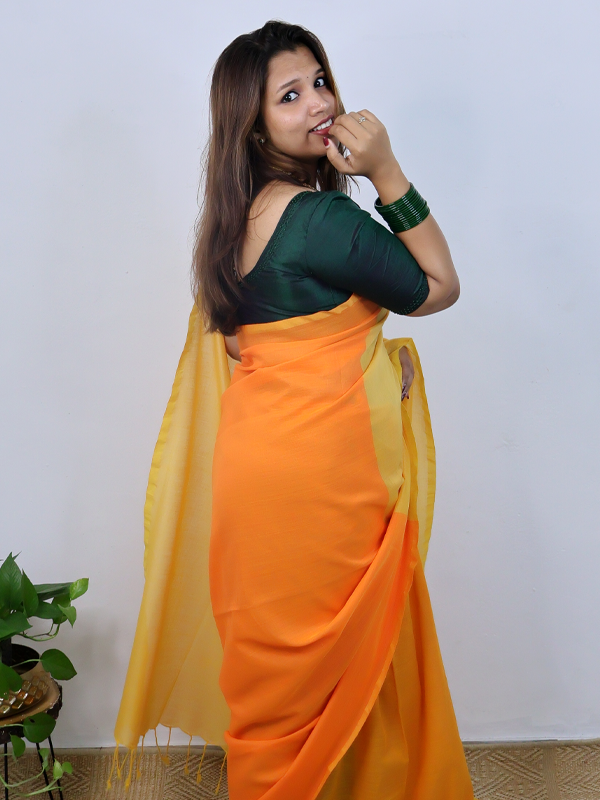 Home Sarees Mul Mul Sthree Yellow, orange & tangerine saree
