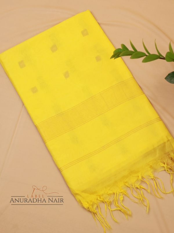 Home Sarees Yellow Semi Tussar Slub Saree With Bullis