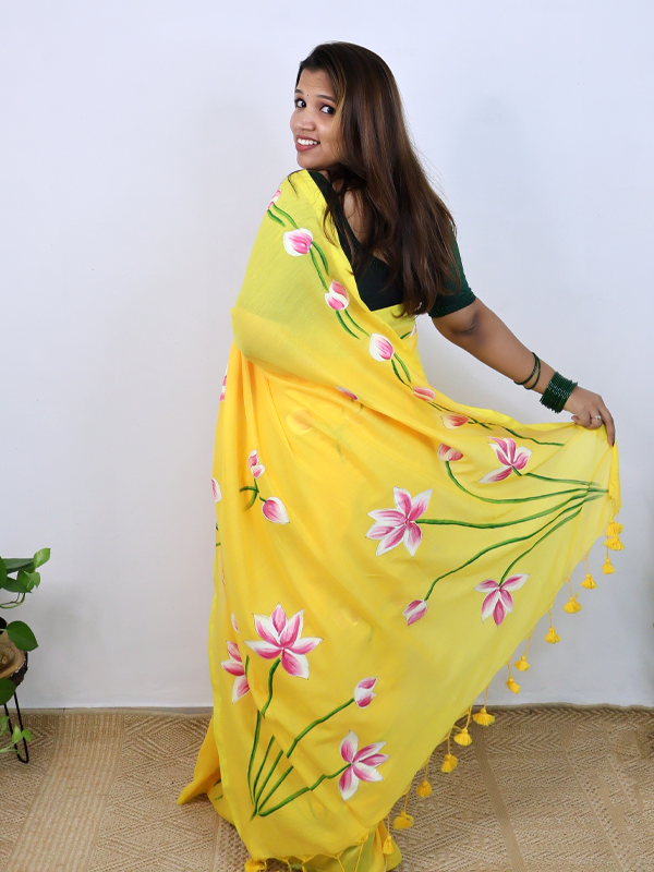 Home Sarees Mul Mul Taamarai Yellow taamarai saree