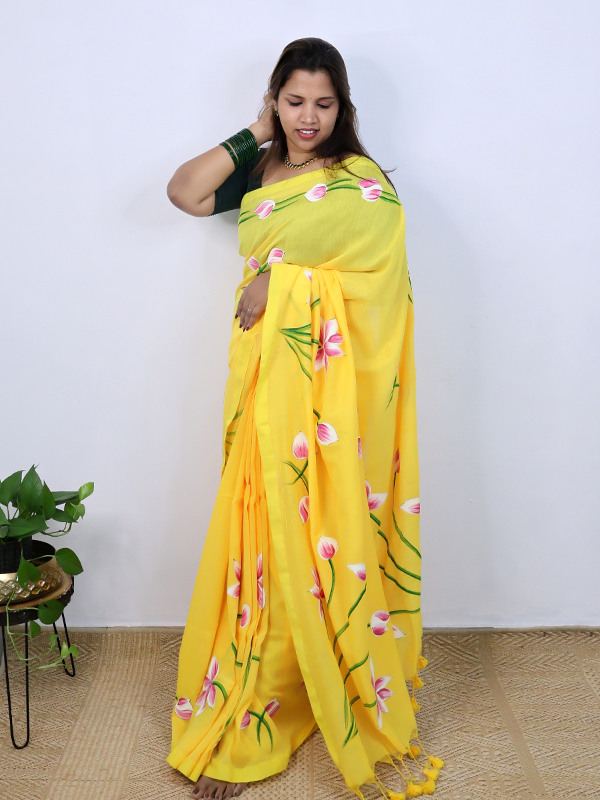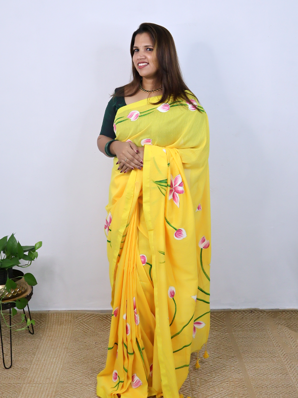 Yellow taamarai saree