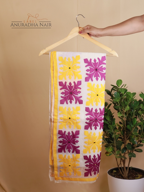 Home Sarees Semi Kota Saree Yellow,Violet and White Semi Kota Saree